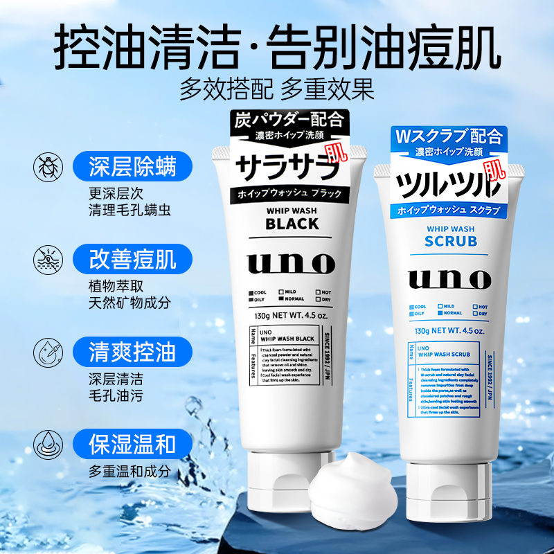 资生堂uno洗面奶男士专用控油祛痘补水保湿去黑头洁面乳吾诺正品