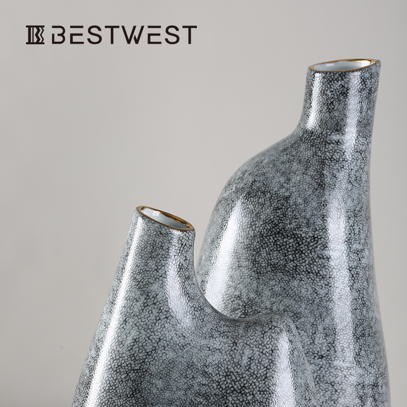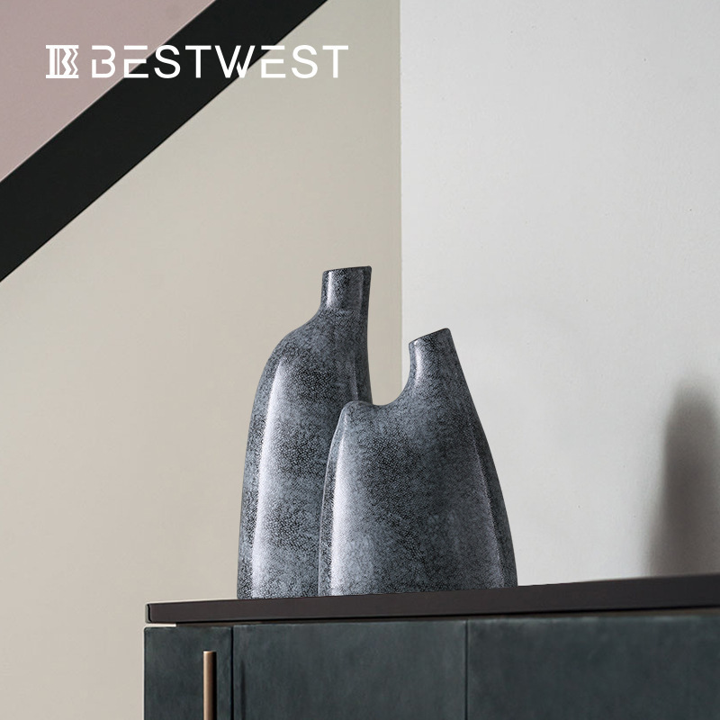 极速轻奢家居陈设瓷器摆件几何创意陶瓷花瓶样板间软X装饰品干花