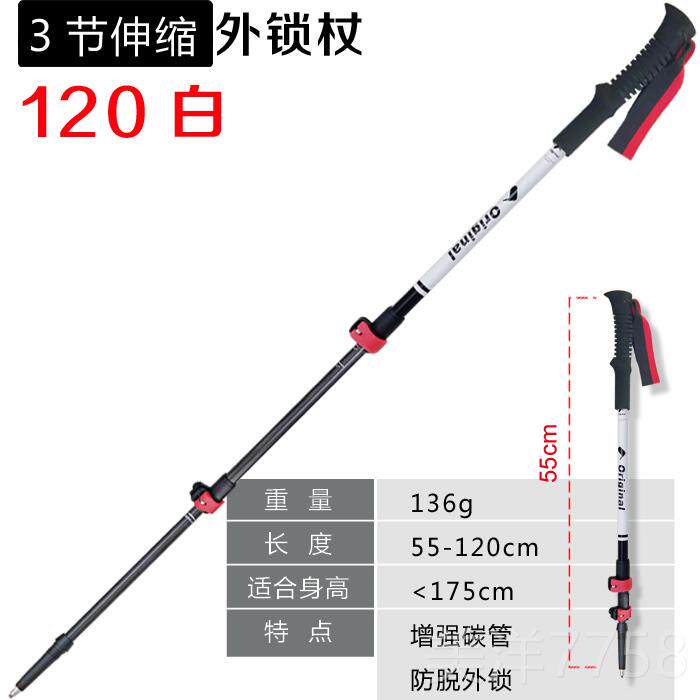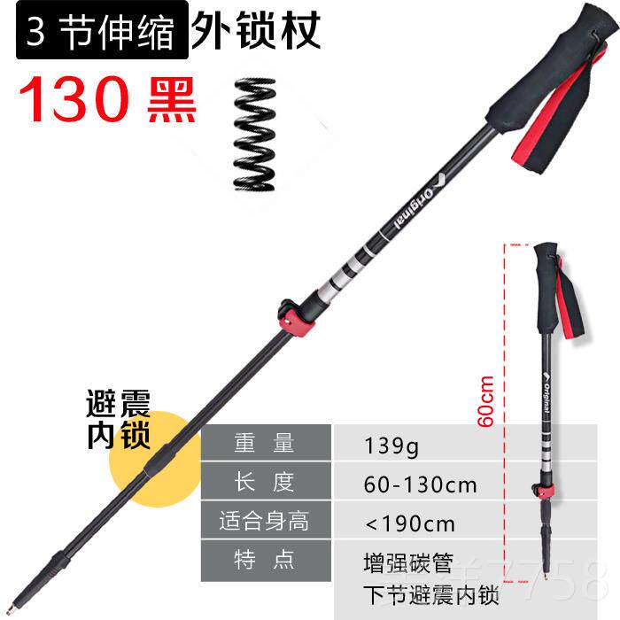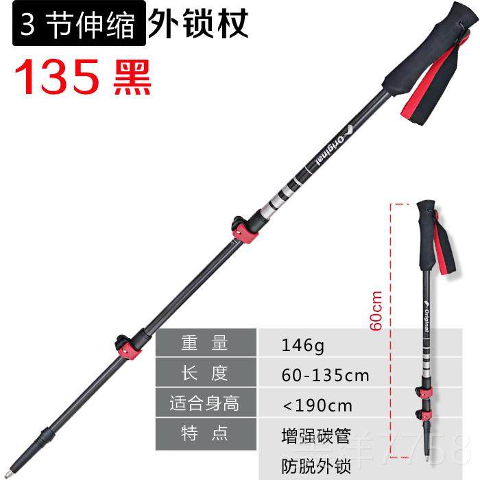 高档素户外登山扣杖三节外锁避震碳登山杖碳纤维手行杖山杖超轻超