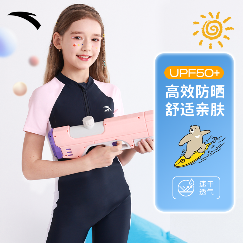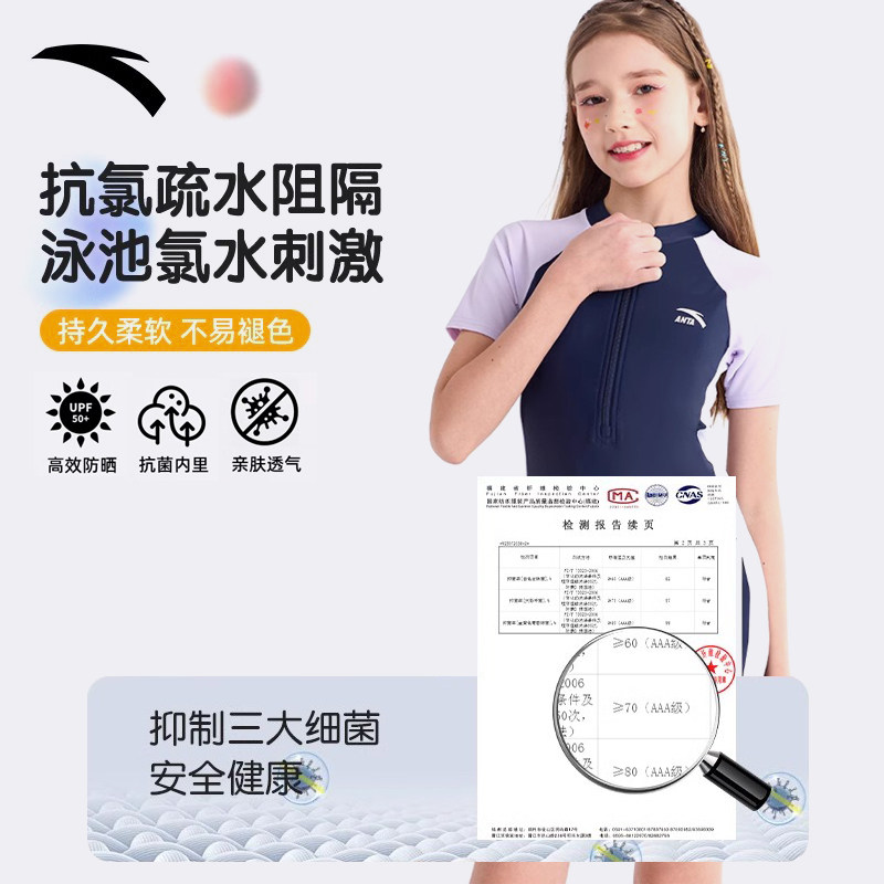 安踏儿童连体泳衣女孩2025新款防晒中大童带胸垫专业训练游泳衣夏