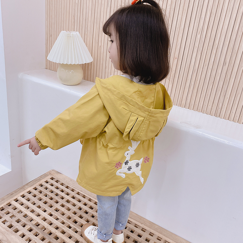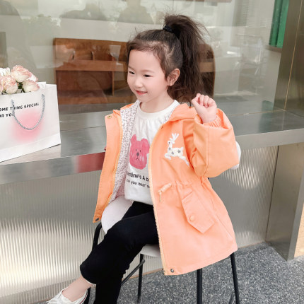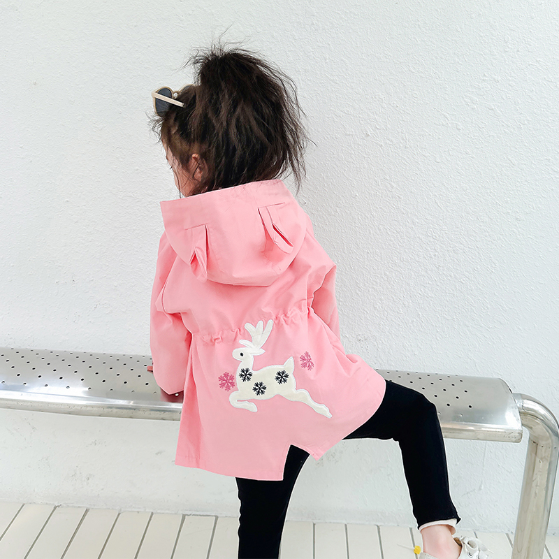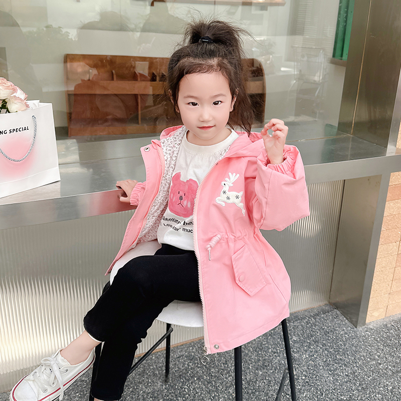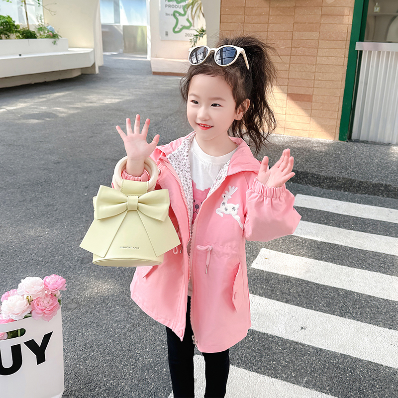 女童中长款风衣连帽收腰外套春装