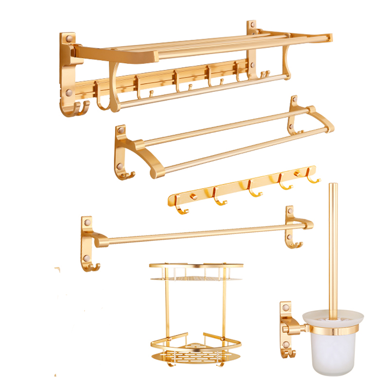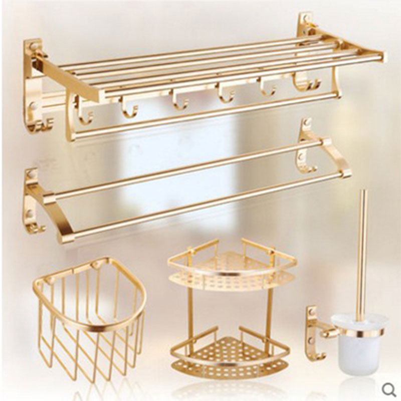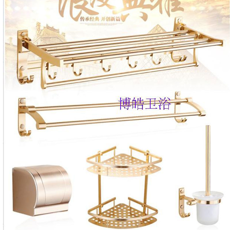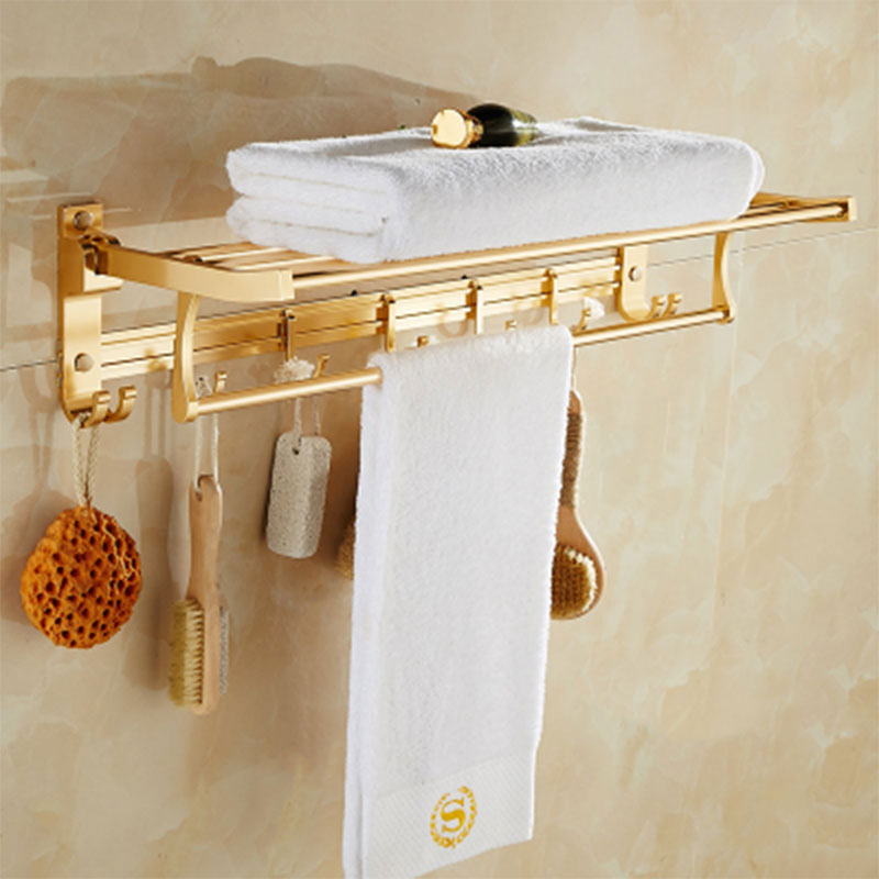 浴室金色置物收纳架折叠卫生间毛巾浴巾架免打孔S墙壁挂件卫浴套