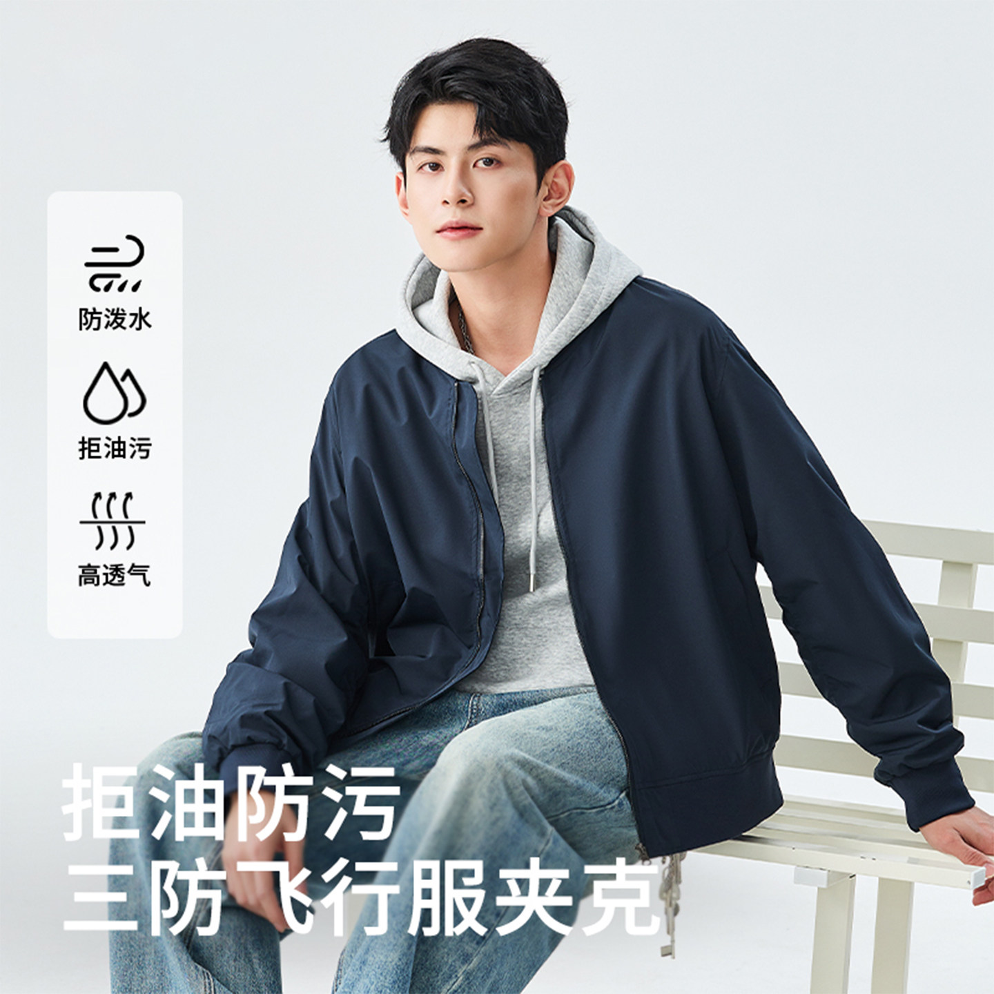 班尼路S&K系列棒球领外套男秋季户外骑行防水上装三防飞行服夹克
