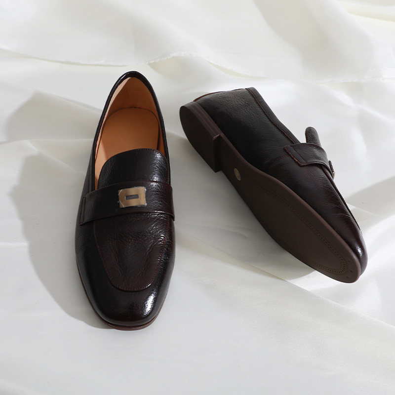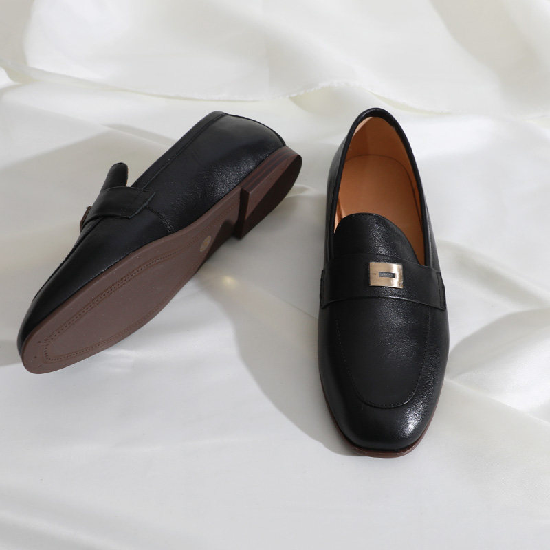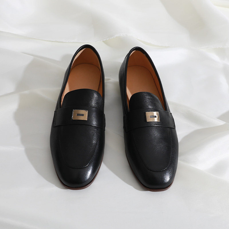 莲花府邸2025时尚复古英伦风乐福鞋圆头中口平底鞋一脚蹬小皮鞋女