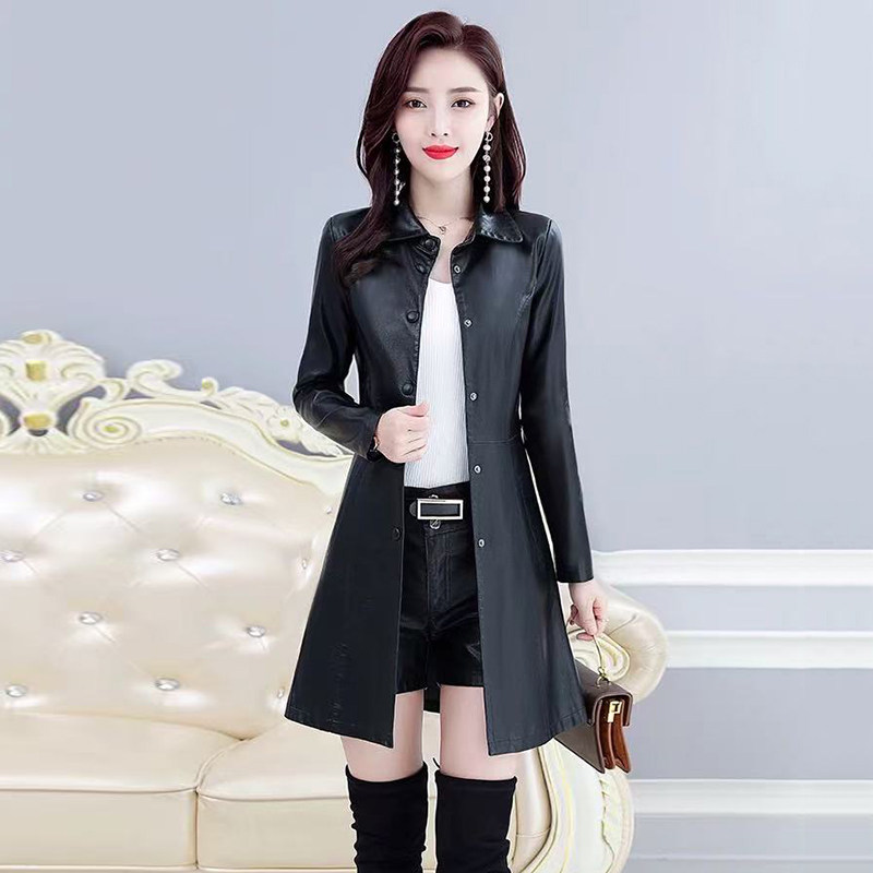 2025春秋新款真皮皮衣女中长款绵羊皮韩版修身显瘦小个子风衣外套