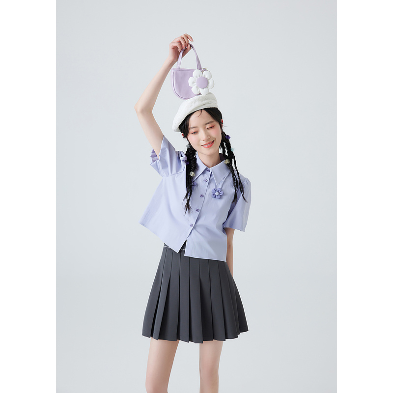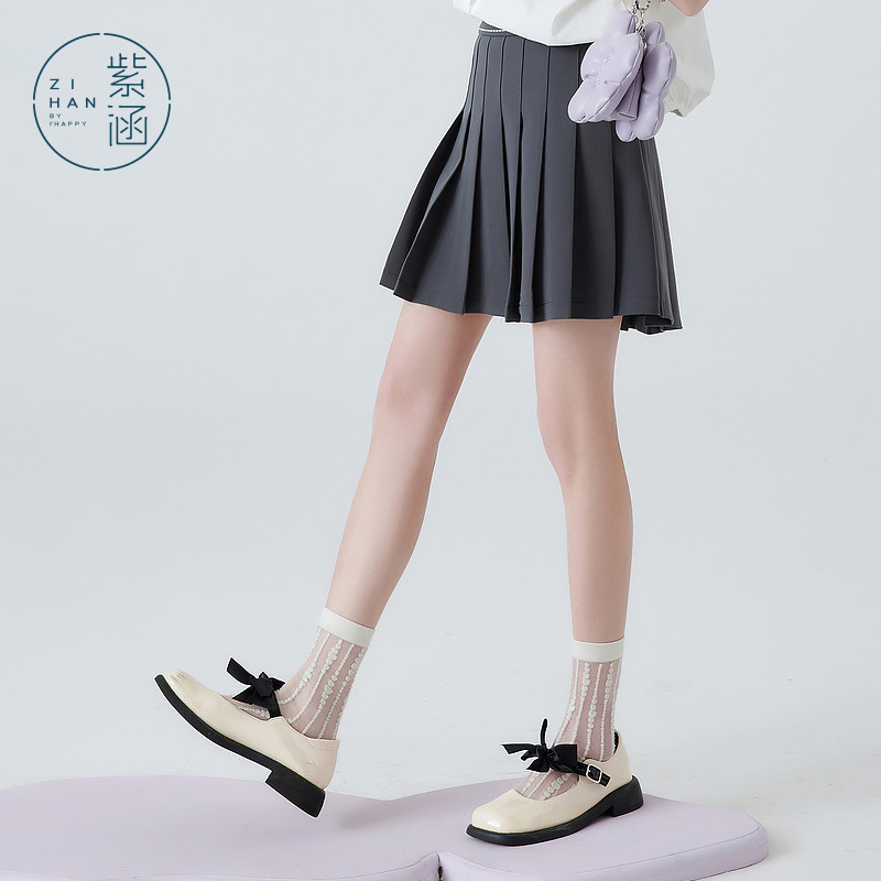 紫涵学院风A字短裙女夏季新款基础百褶裙简约少女半身裙显瘦百搭