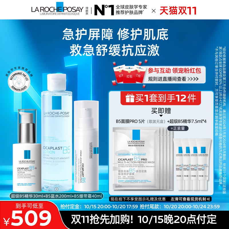 【双11抢先加购】理肤泉B5修护水乳套装蓝水保湿爽肤水滋润护肤品