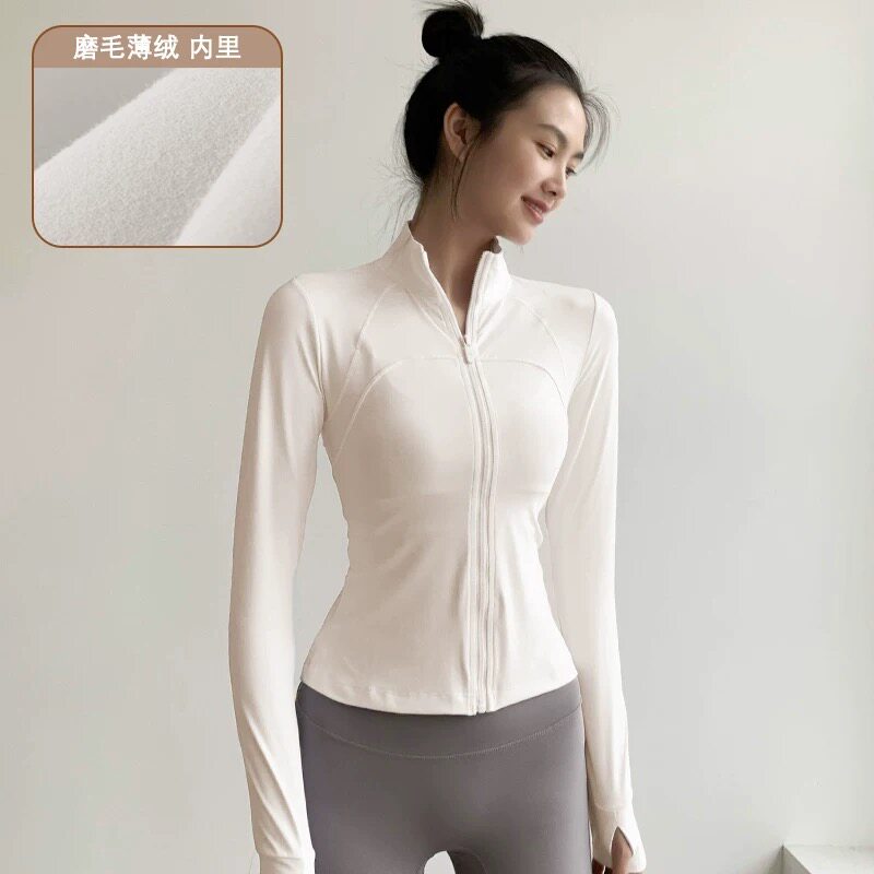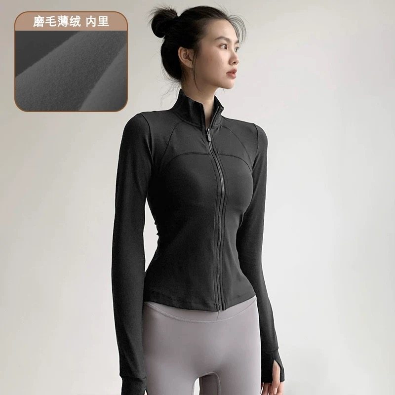 加绒运动外套立领拉链瑜伽服跑步训练健身速干显瘦骑行上衣 女