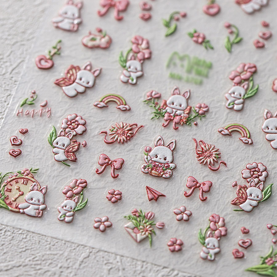 粉色蝴蝶结兔子美甲贴纸浮雕立体可爱花花兔子春季背胶指甲贴
