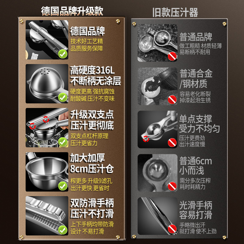 德国柠檬榨汁器手动榨汁机挤压器316不锈钢橙子压汁器小型柠檬夹