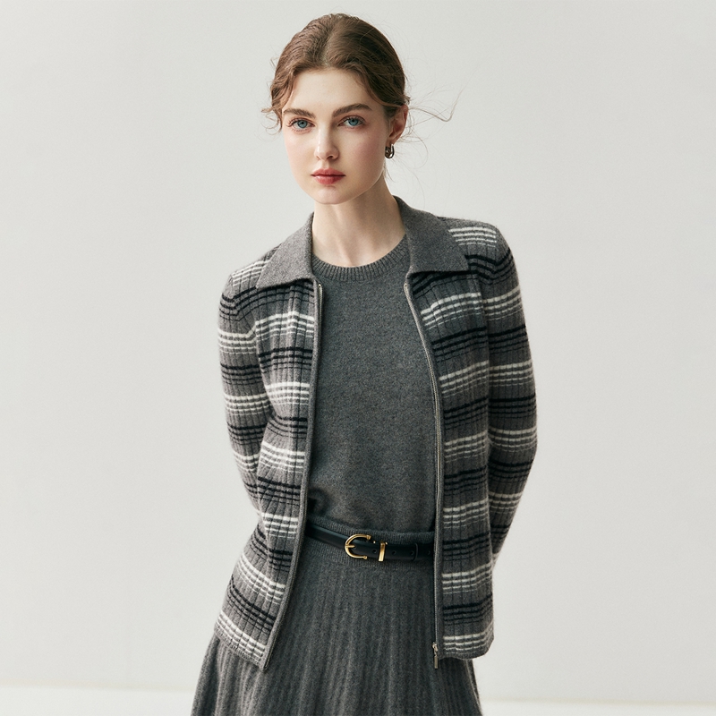 2025秋冬新款山羊绒衫女polo宽松条纹毛衣时尚显瘦羊毛针织打底衫