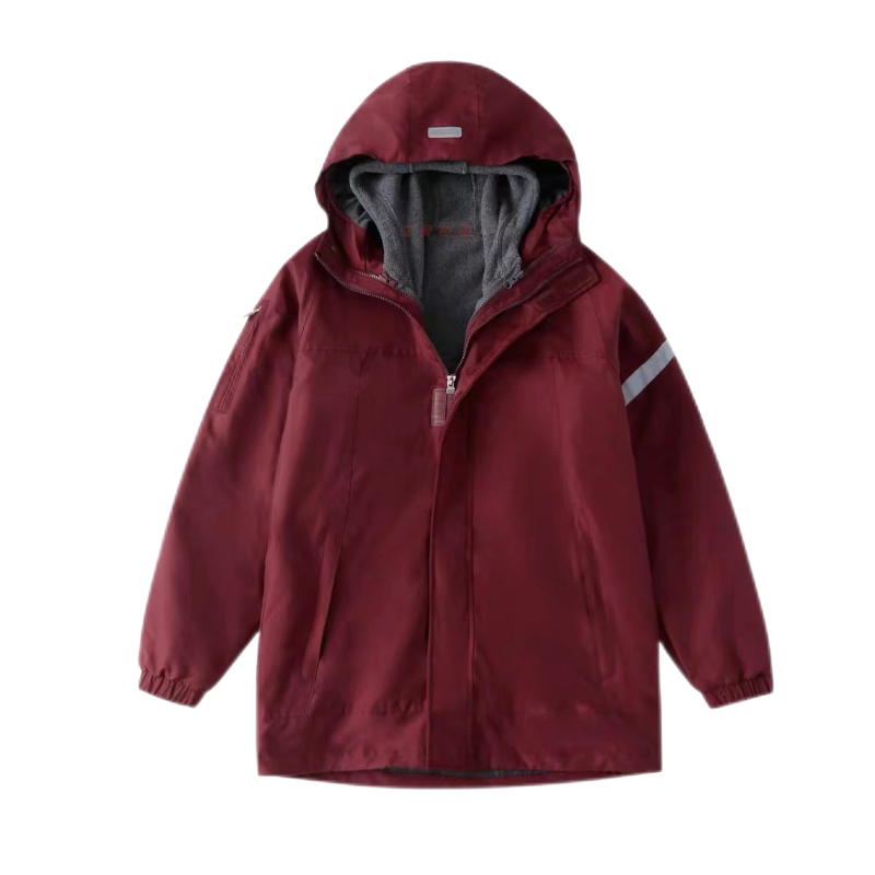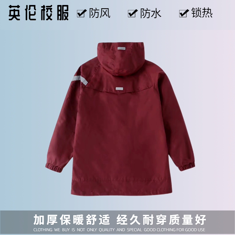 校服中小学生英伦学院儿童加厚冬季校服棉服枣红冲锋衣两件套