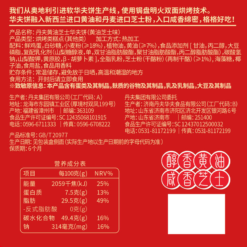 丹夫华夫饼黄油芝士味送礼盒营养早餐糕点心充饥小面包零食480g