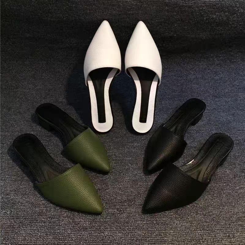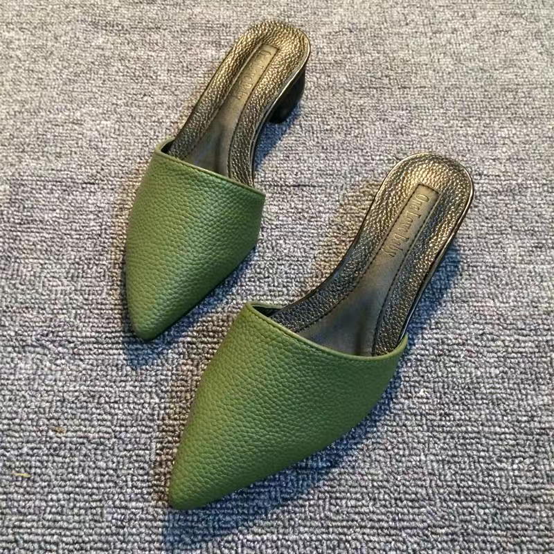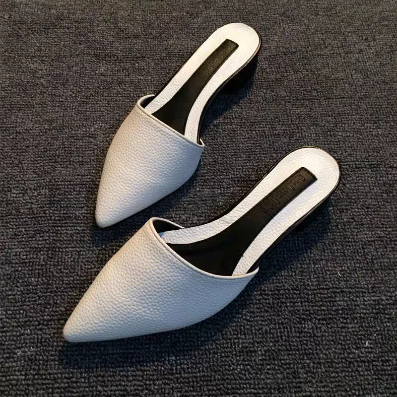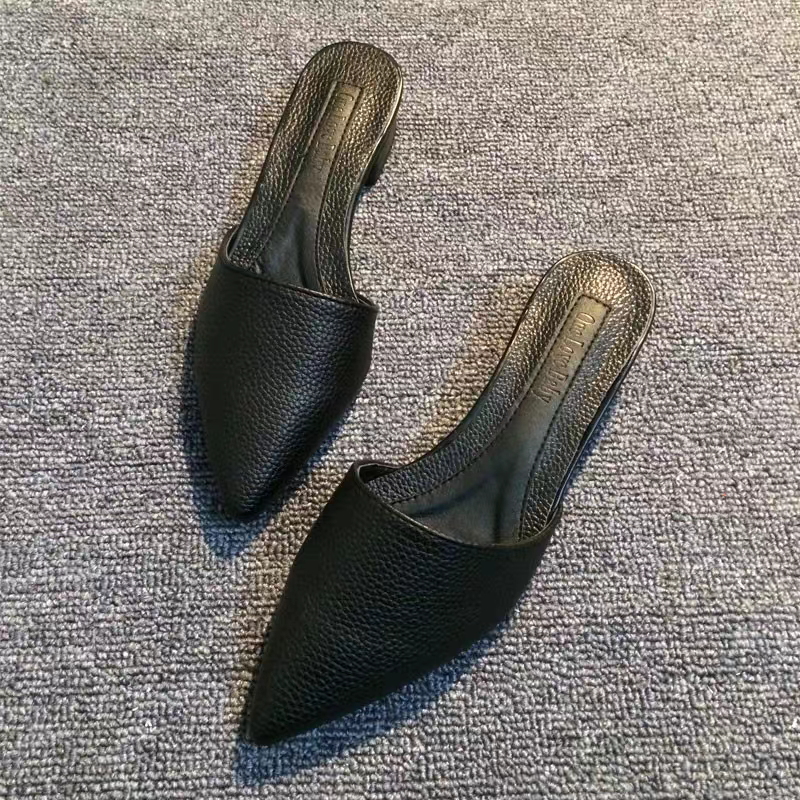 包头拖鞋女夏外穿2025年春季新款真皮尖头平跟拖鞋粗跟凉拖平底鞋