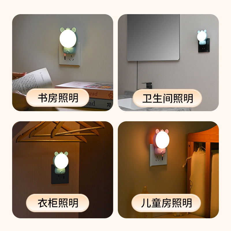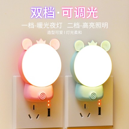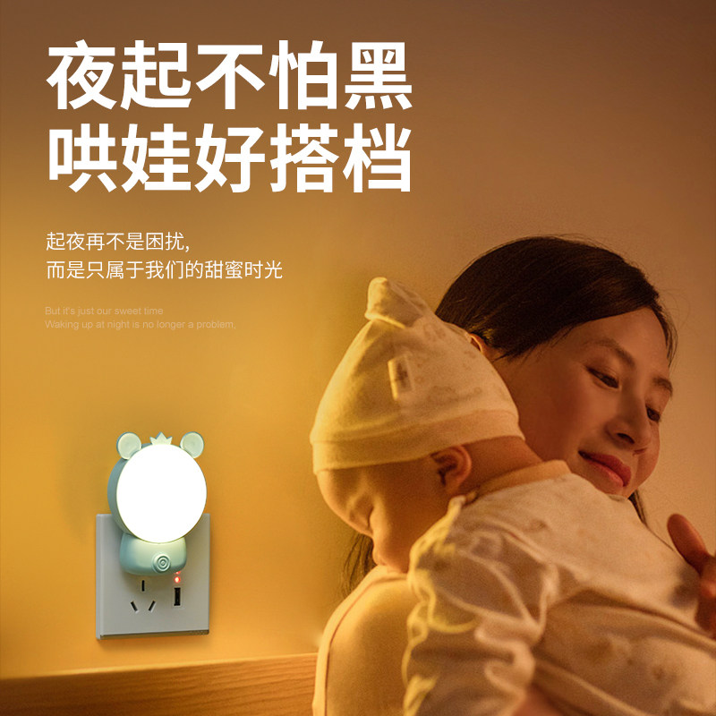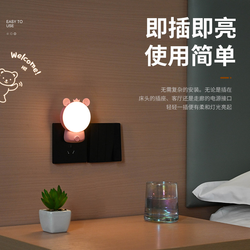卡通小熊小夜灯插电带开关可调光婴儿喂奶插座卧室起夜可爱床头灯