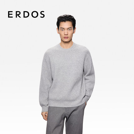 ERDOS 男装圆领双畦羊绒衫25年秋冬新品厚款纯色百搭保暖针织衫
