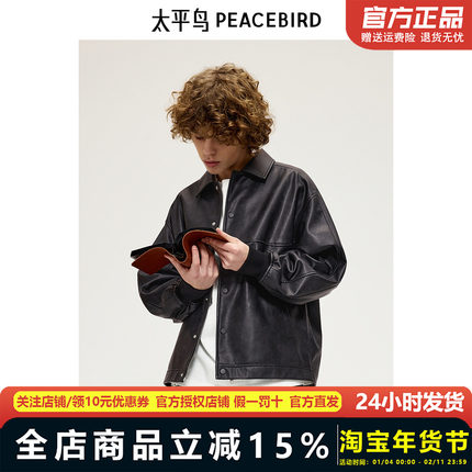 【商场同款】太平鸟男装夹克24秋新款阔版pu皮外套潮牌 B2BCE3262