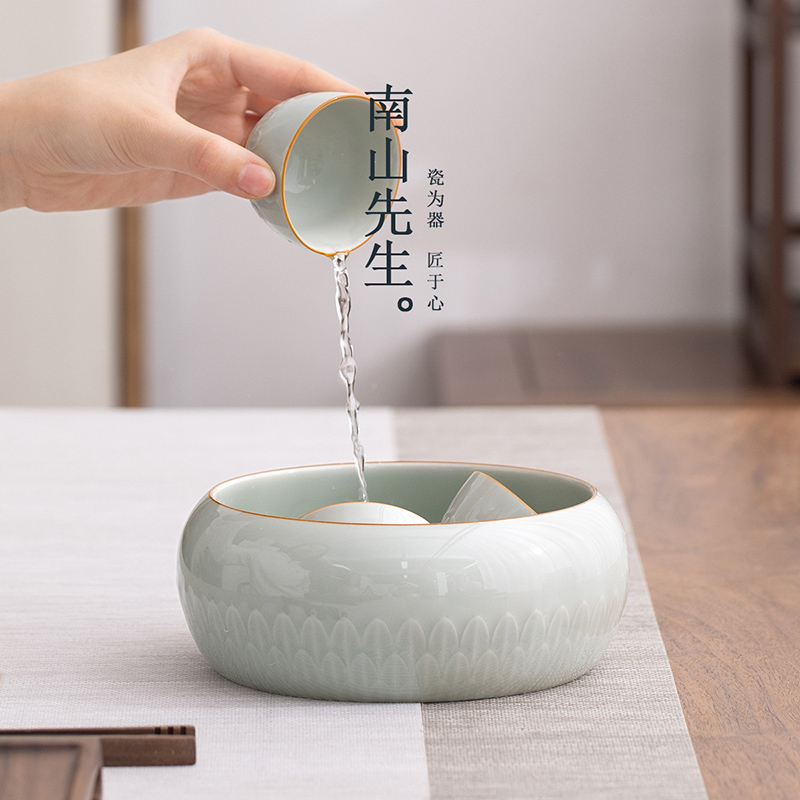 南山先生莲瓣茶洗家用陶瓷茶道功夫茶具配件大号茶碗水盂笔洗杯洗