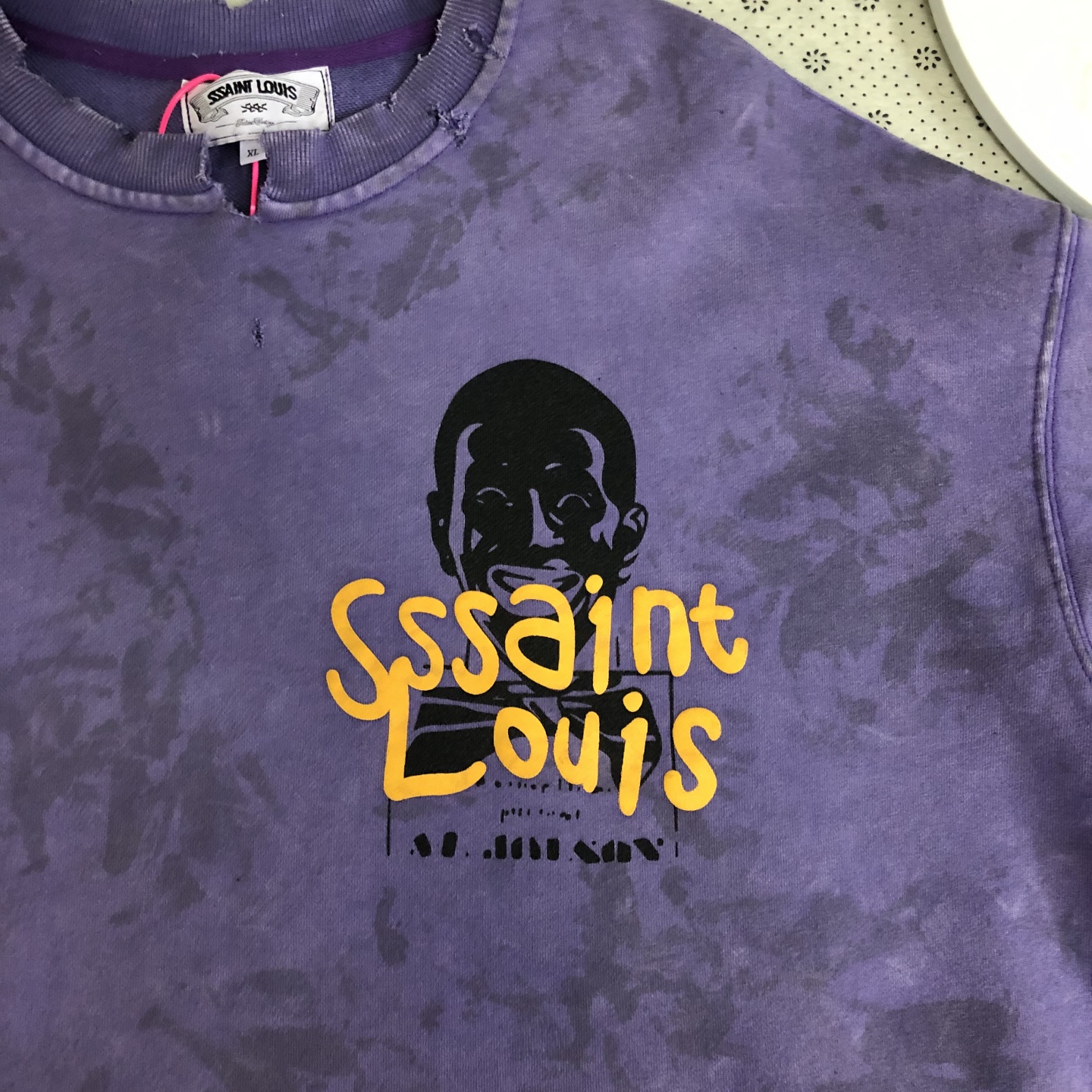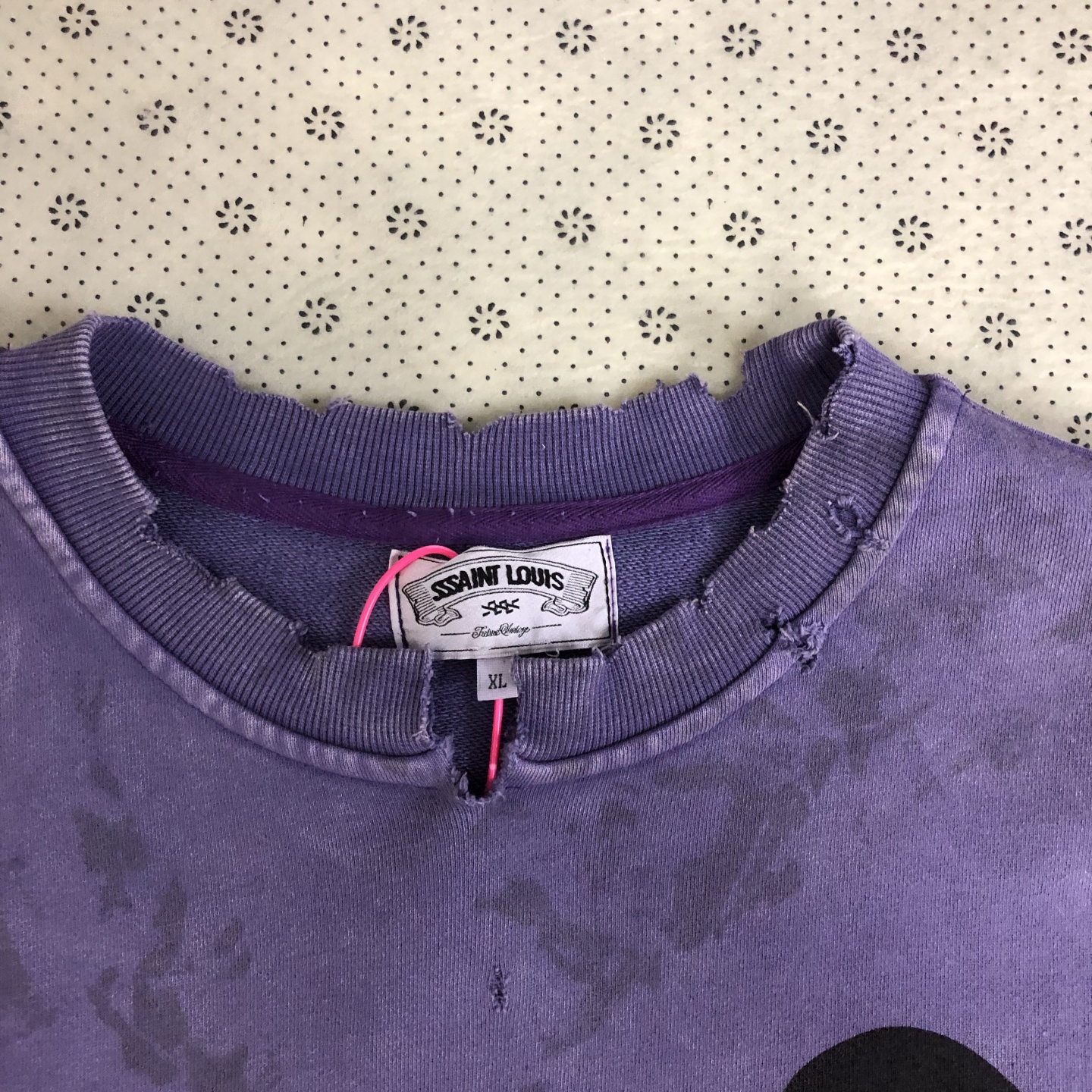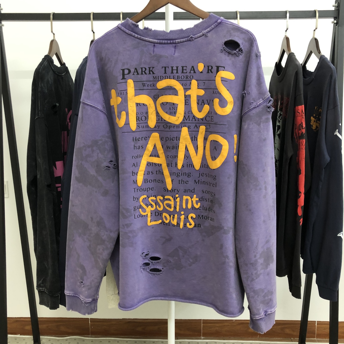 SSSAINT LOUIS美式复古字母印花黑面领口撕裂做旧圆领卫衣男潮