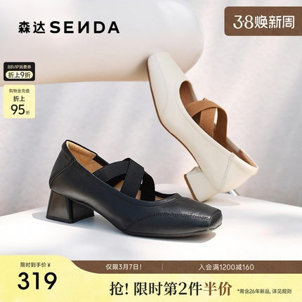 森达猪鼻子粗跟玛丽珍女款春秋季商场同款法式芭蕾浅口单鞋XPG01