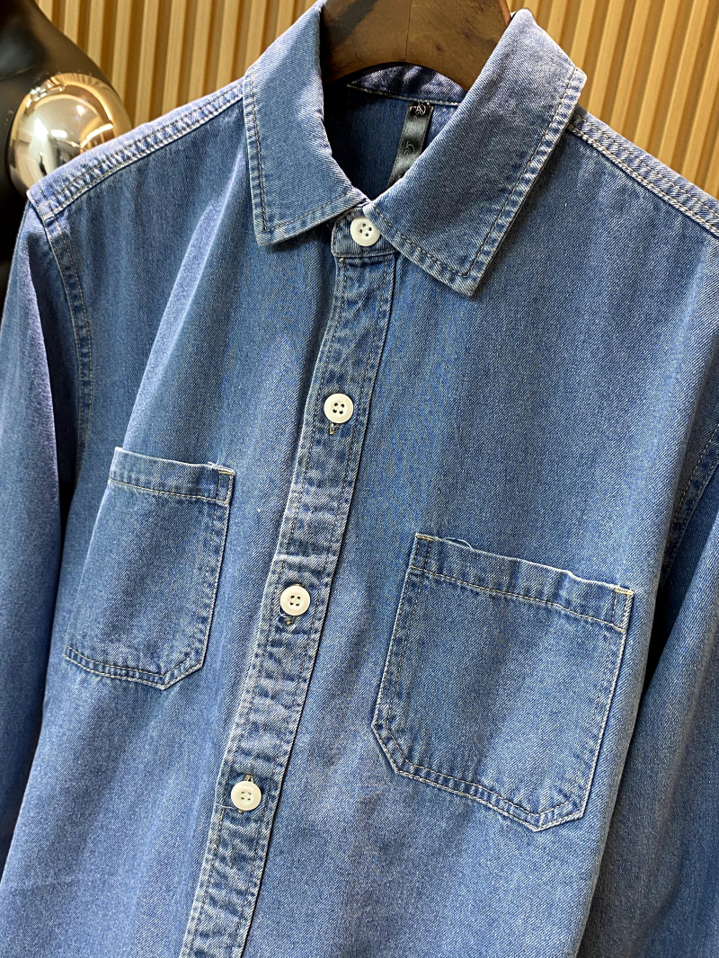 炒经典 16盎司100棉重水洗秋季男士休闲长袖牛仔衬衫薄夹克外套潮