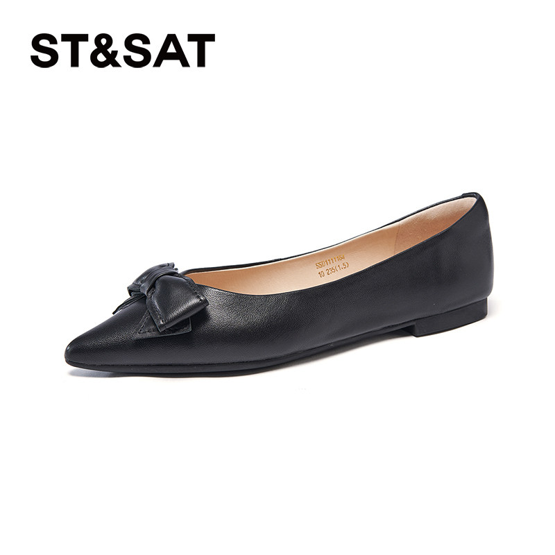 星期六浅口单鞋2025春季新款尖头蝴蝶结羊皮平底女鞋SSD1111164