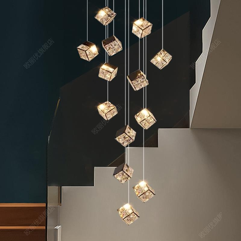 复式楼客厅大吊灯轻奢别墅挑空楼梯吊灯现代简约loft公寓水晶吊灯