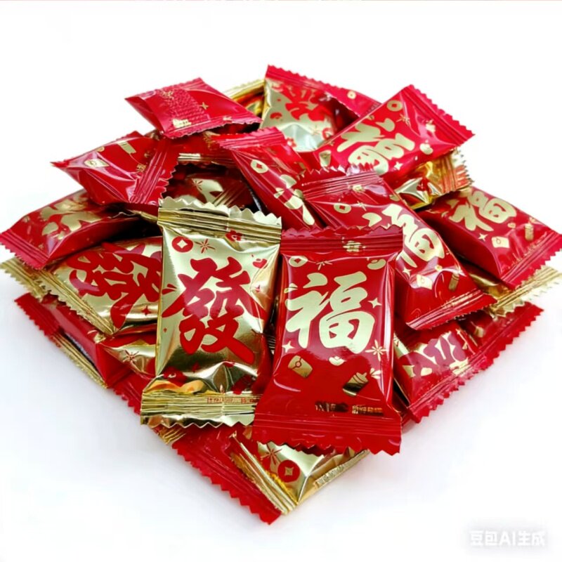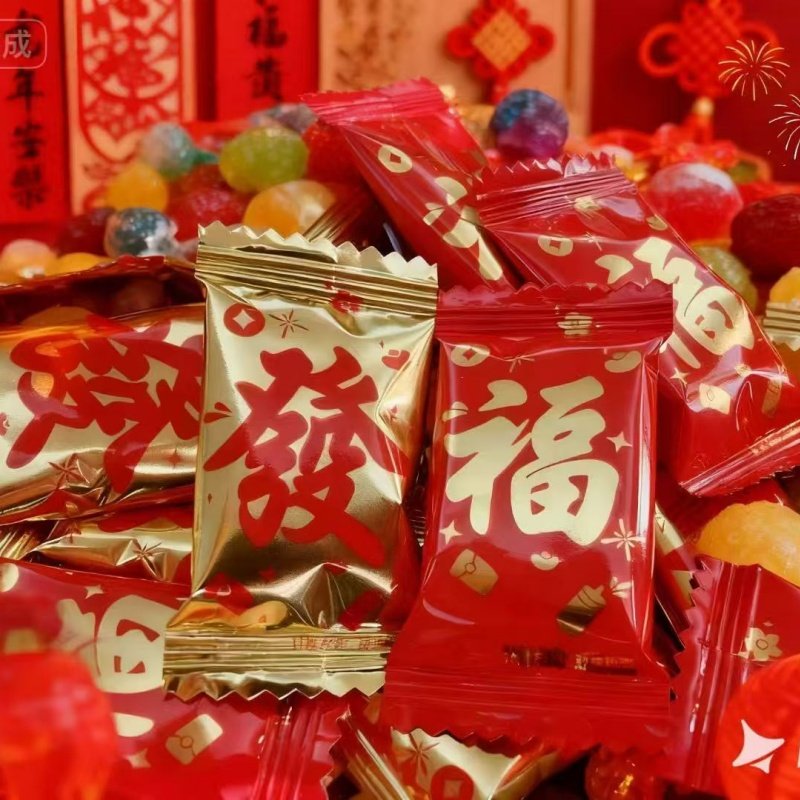 红福字特浓牛奶软糖块过年货结婚喜庆金发袋香甜椰子经典混合糖果