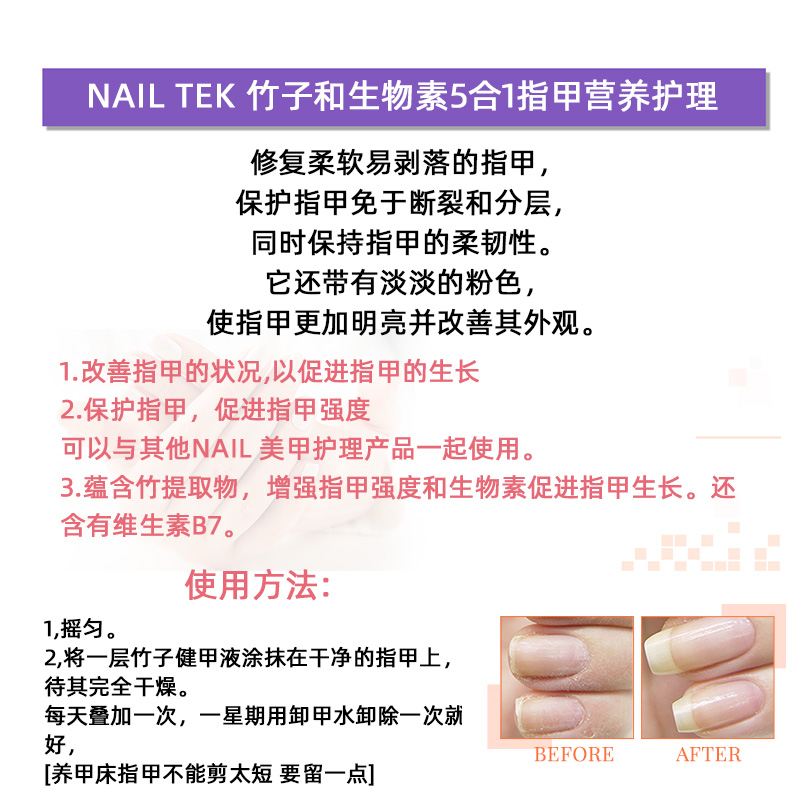 nailtek竹子精华竹子生长素强甲油护甲油营养液 强韧甲面 裸粉色