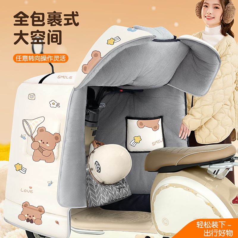 电动车挡风被冬季加绒加厚全包斗篷式电瓶摩托防水防风罩24新款