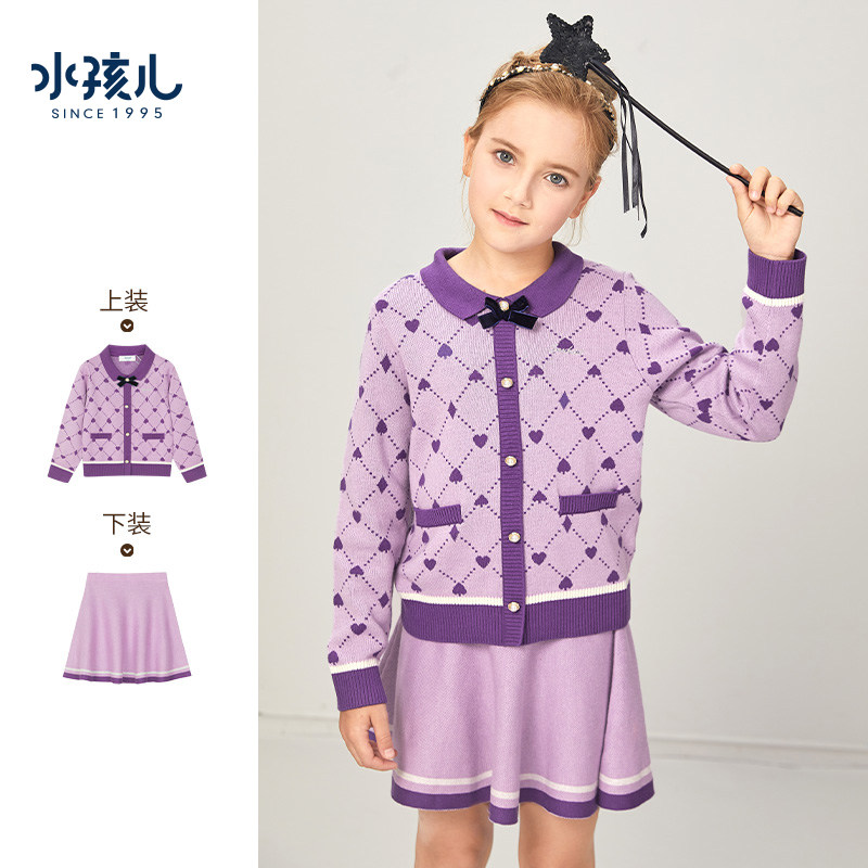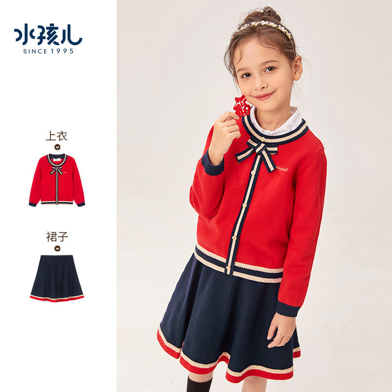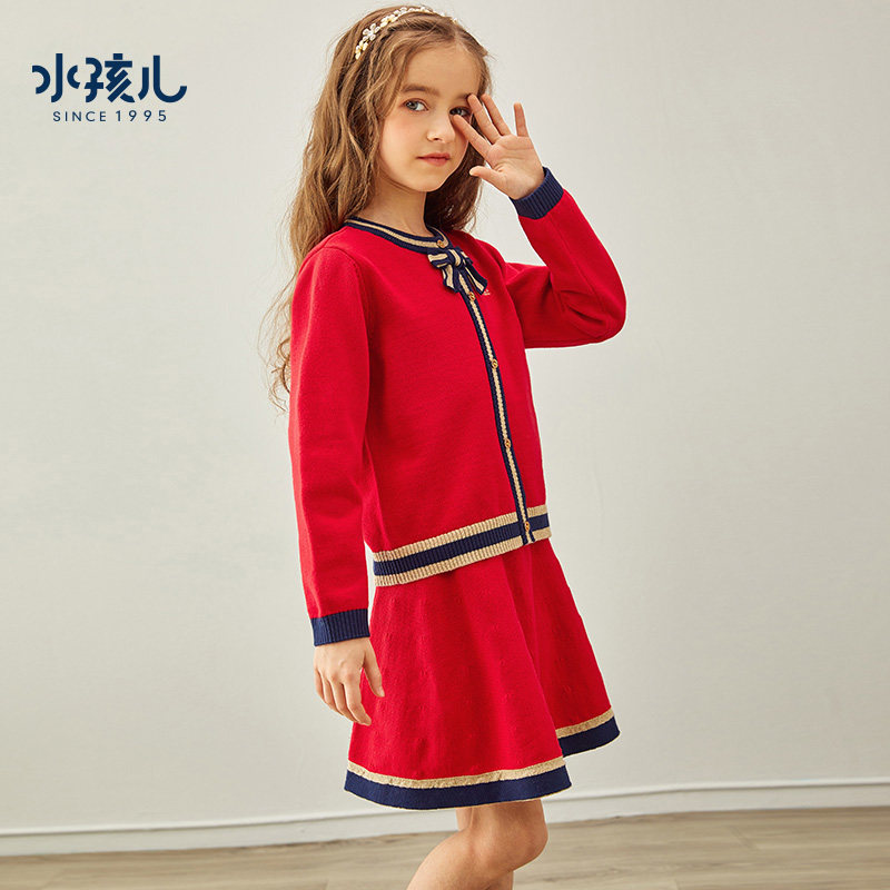 水孩儿童装女童套装秋冬红色毛衣针织衫裙子套裙大童新年装裙子