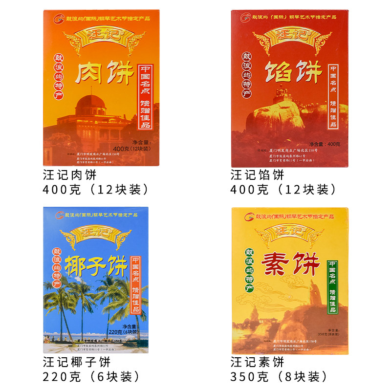 厦门鼓浪屿特产汪记馅饼肉饼凤梨酥素饼椰子饼传统糕点小吃2盒