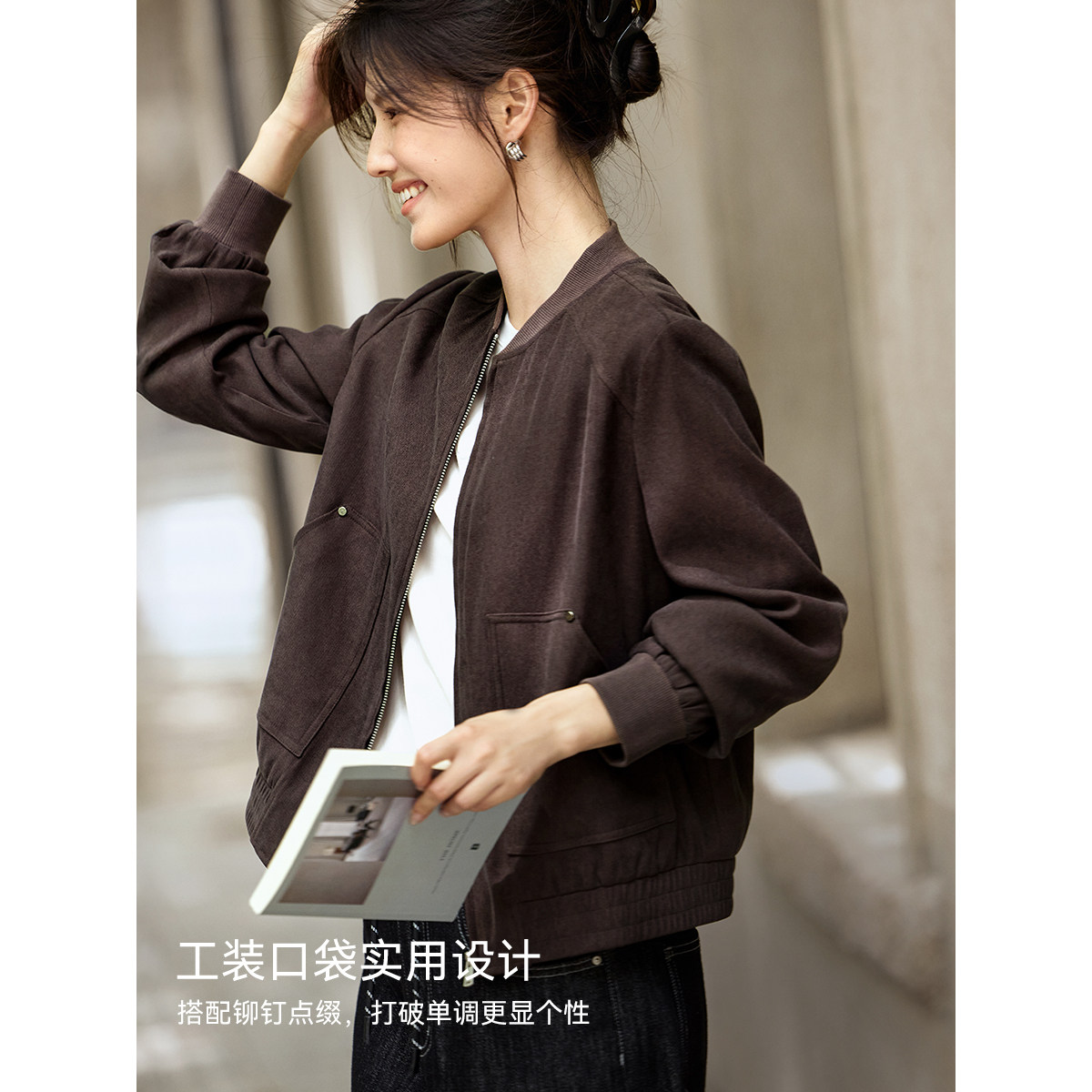 XWI欣未温暖磨毛棒球服外套女秋冬新款休闲工装风小个子夹克上衣