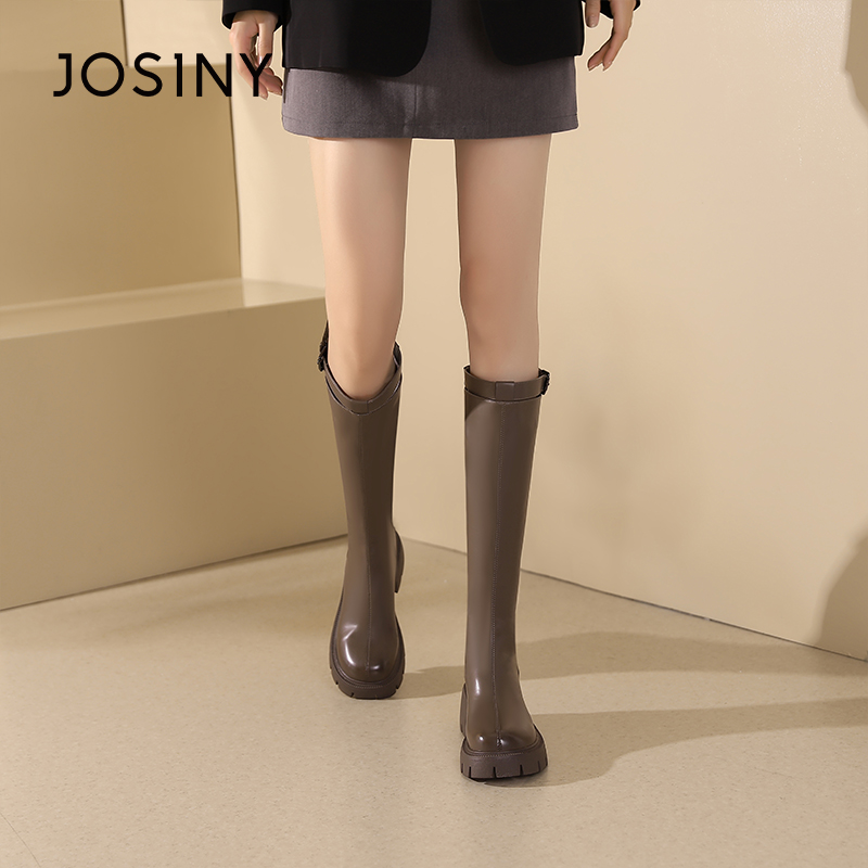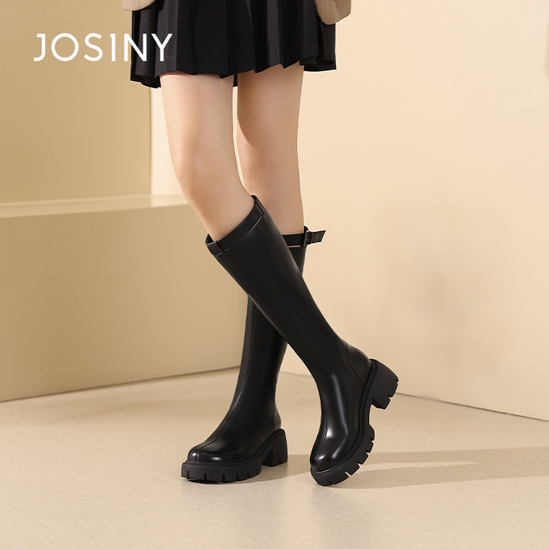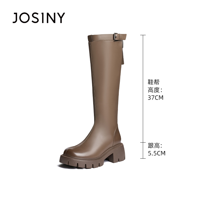 卓诗尼女鞋撤柜正品厚底长筒靴女冬季加绒高筒靴后拉链不过膝长靴