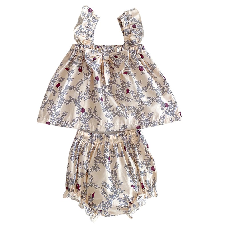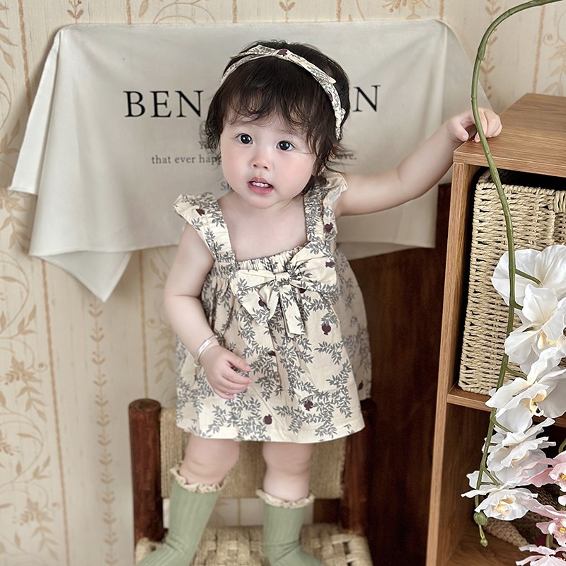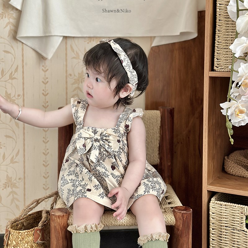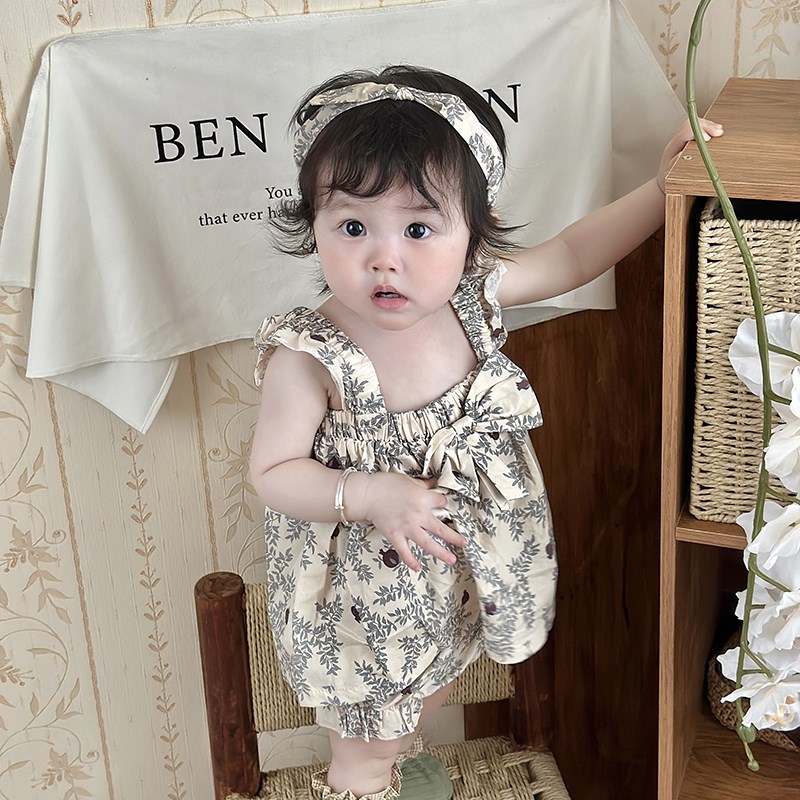 韩版新款女宝宝衣服夏装q 婴儿吊带碎花上衣裙+花苞裤女童套装薄