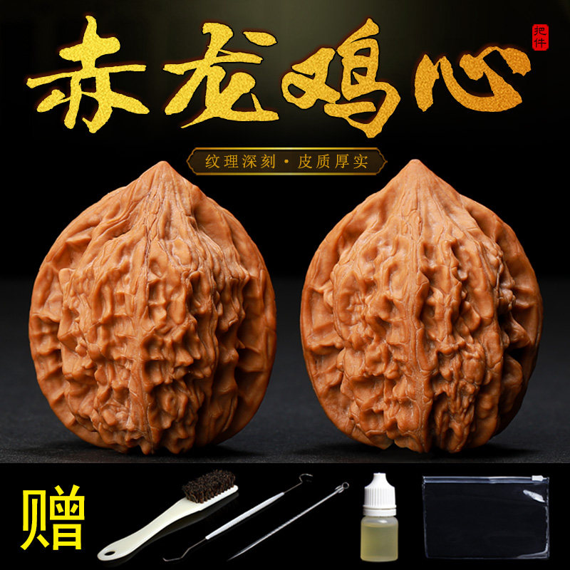 涞水野外生长精选品文玩核桃赤龙鸡心麻核桃手把件盘玩大小尺寸男
