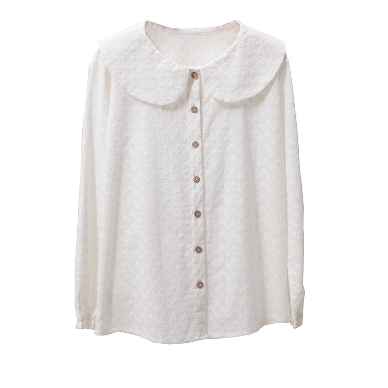 秋季新款娃娃领衬衫女大码文艺小清新蕾丝上衣打底衫百搭宽松