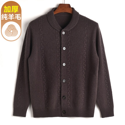 秋冬时尚中老年人男装毛衣100%纯羊毛衫爸爸装针织开衫外套50岁60