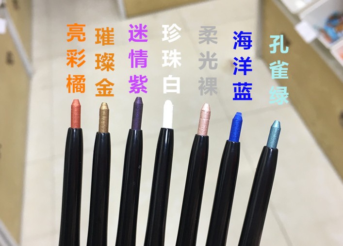 美宝莲轻松画柔滑炫彩眼线笔 孔雀绿 亮彩橘 柔光裸 璀璨金 黑色
