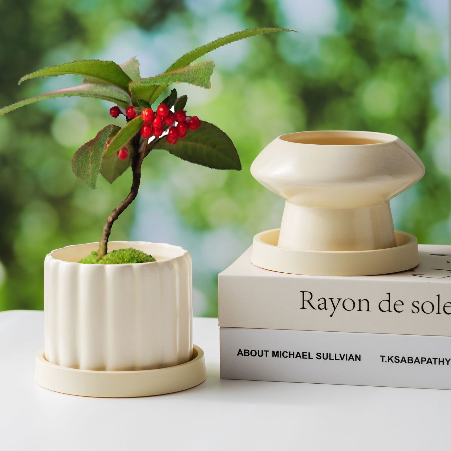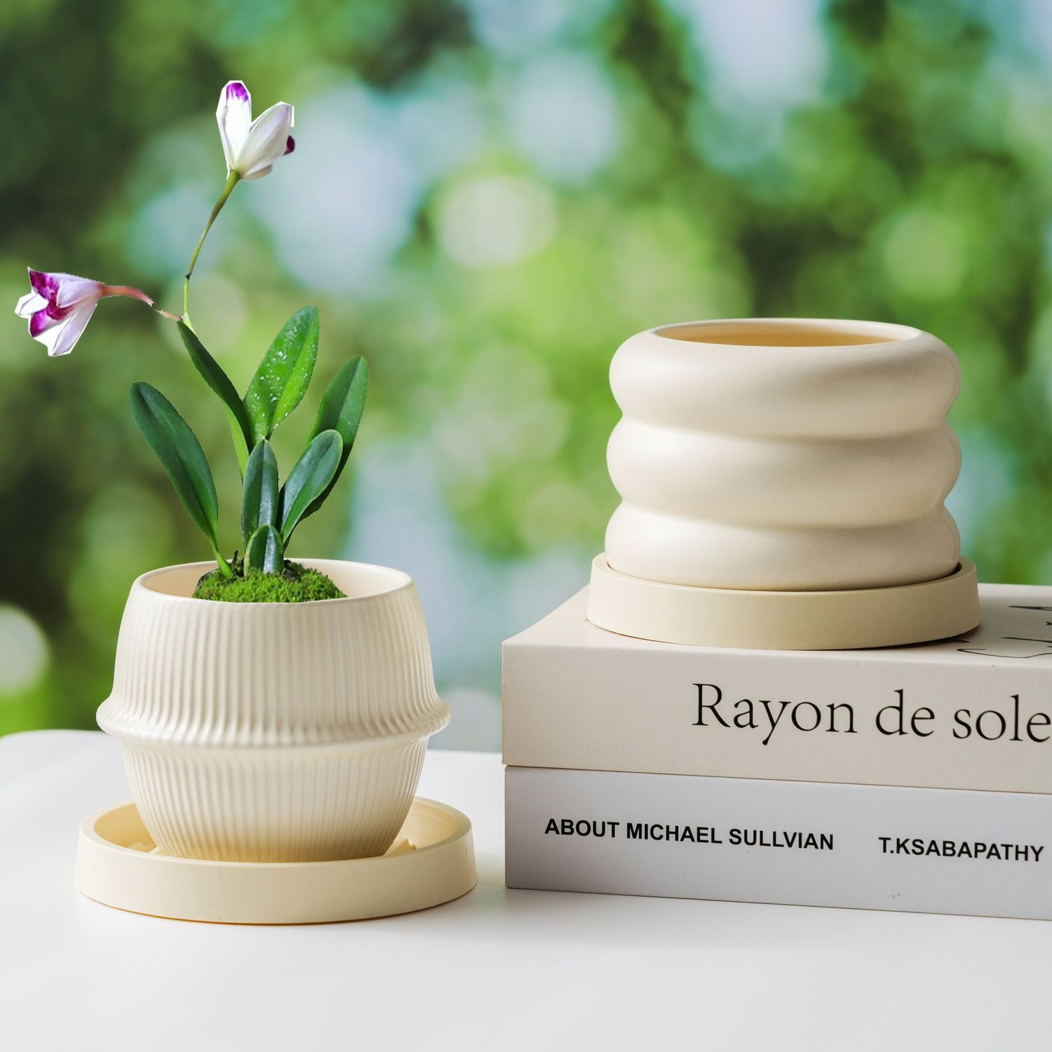 ins奶油风北欧轻奢蝴蝶兰梦香兰多肉绿植盆景盆简约陶瓷花盆家用