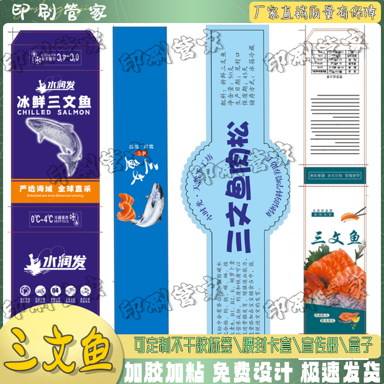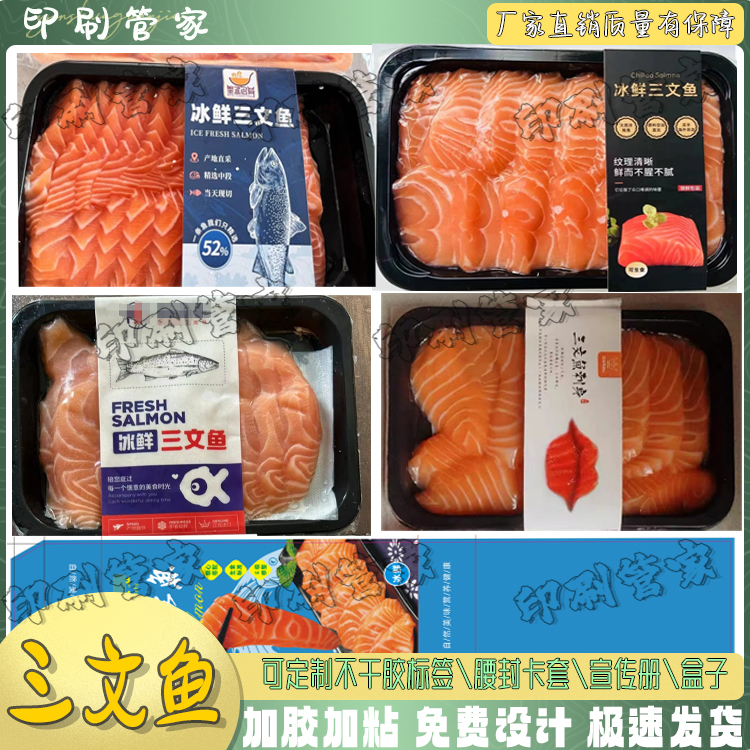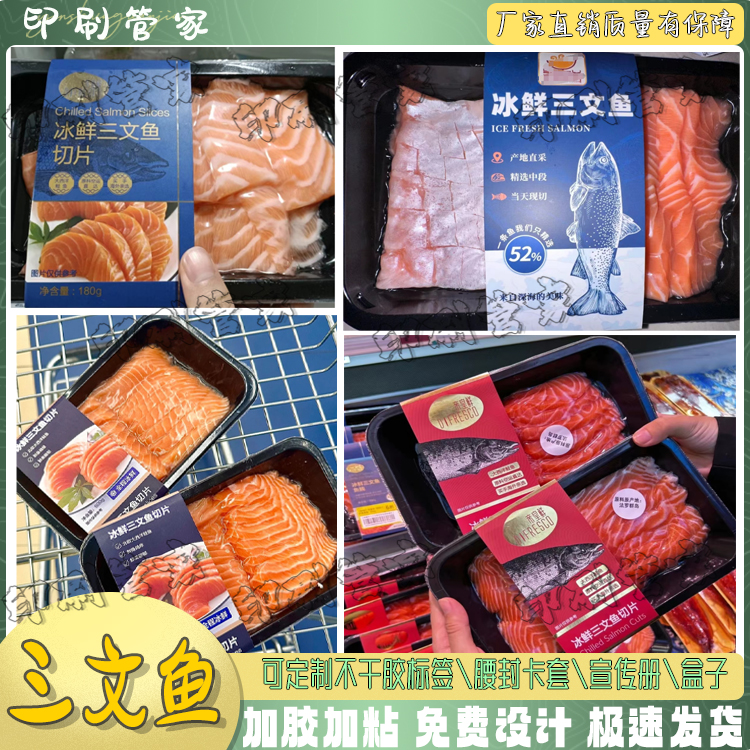 定制三文鱼日料腰封牛排肥牛卷自热小火锅长条封口不干胶标签