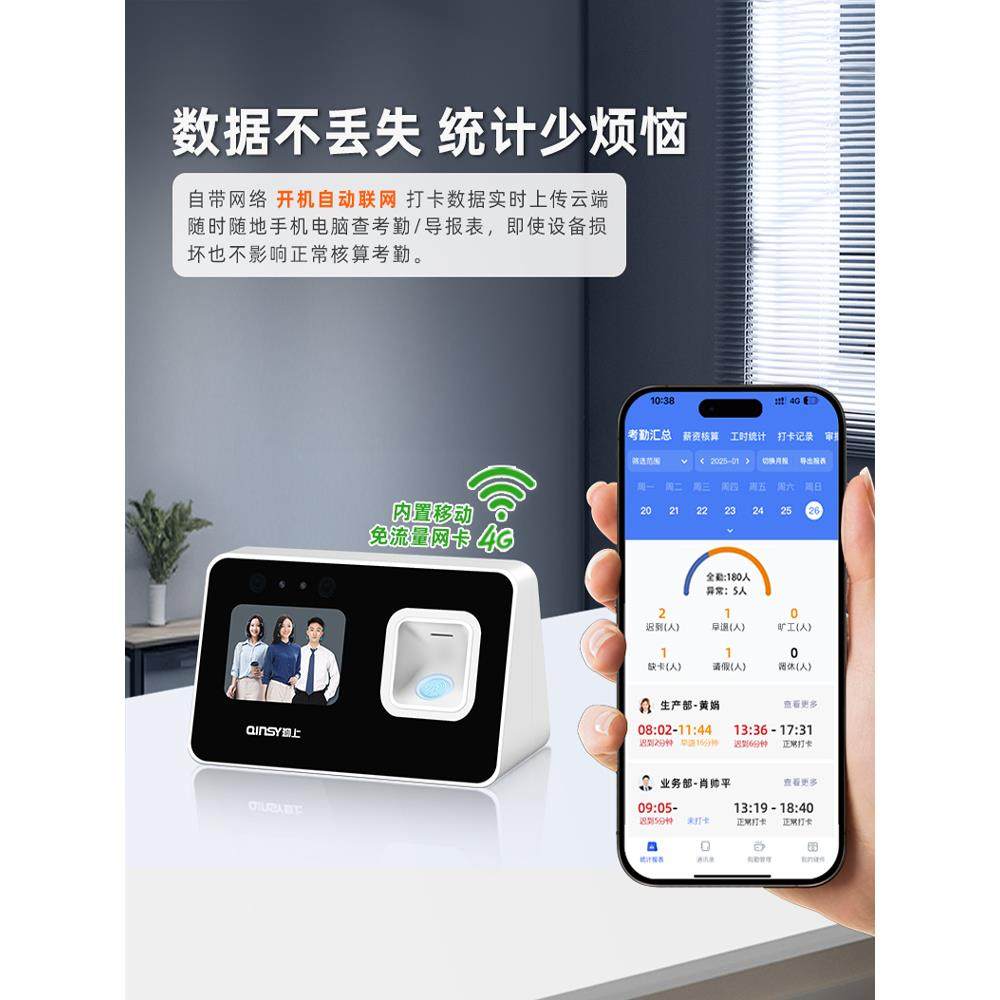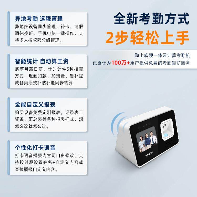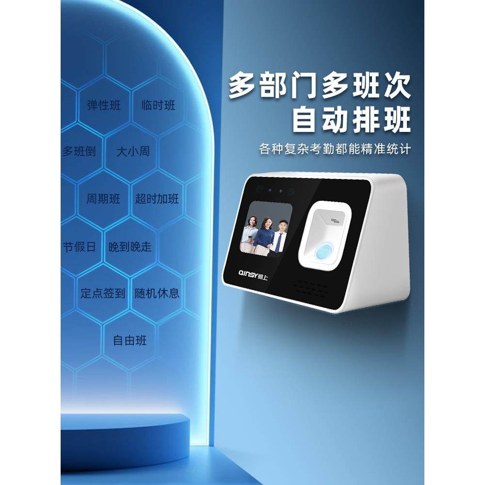 勤上智能云考勤机打卡机多人脸指纹识别一体机员工上班刷脸签到机