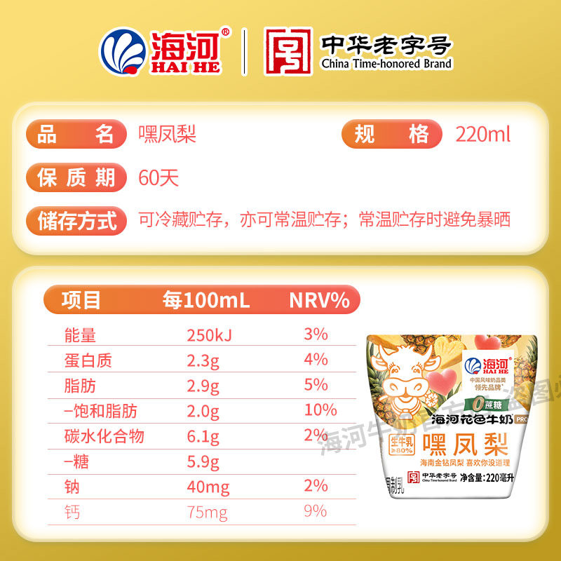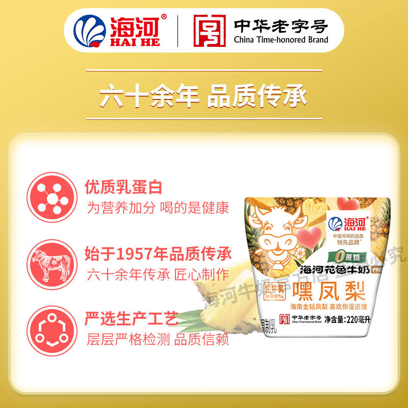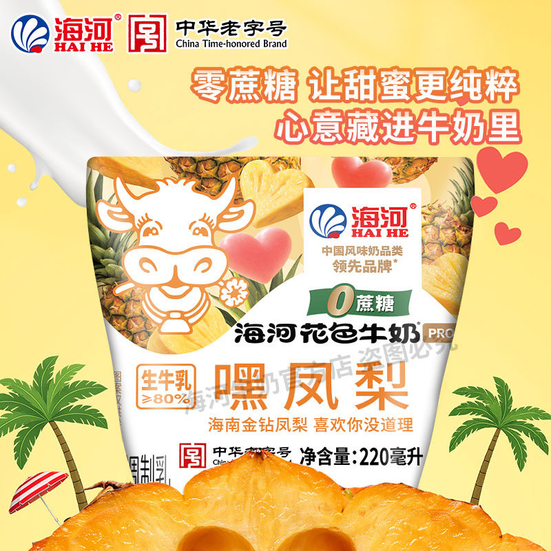 海河牛奶0蔗糖嘿凤梨味10袋20多种口味混合风味奶学生早餐奶