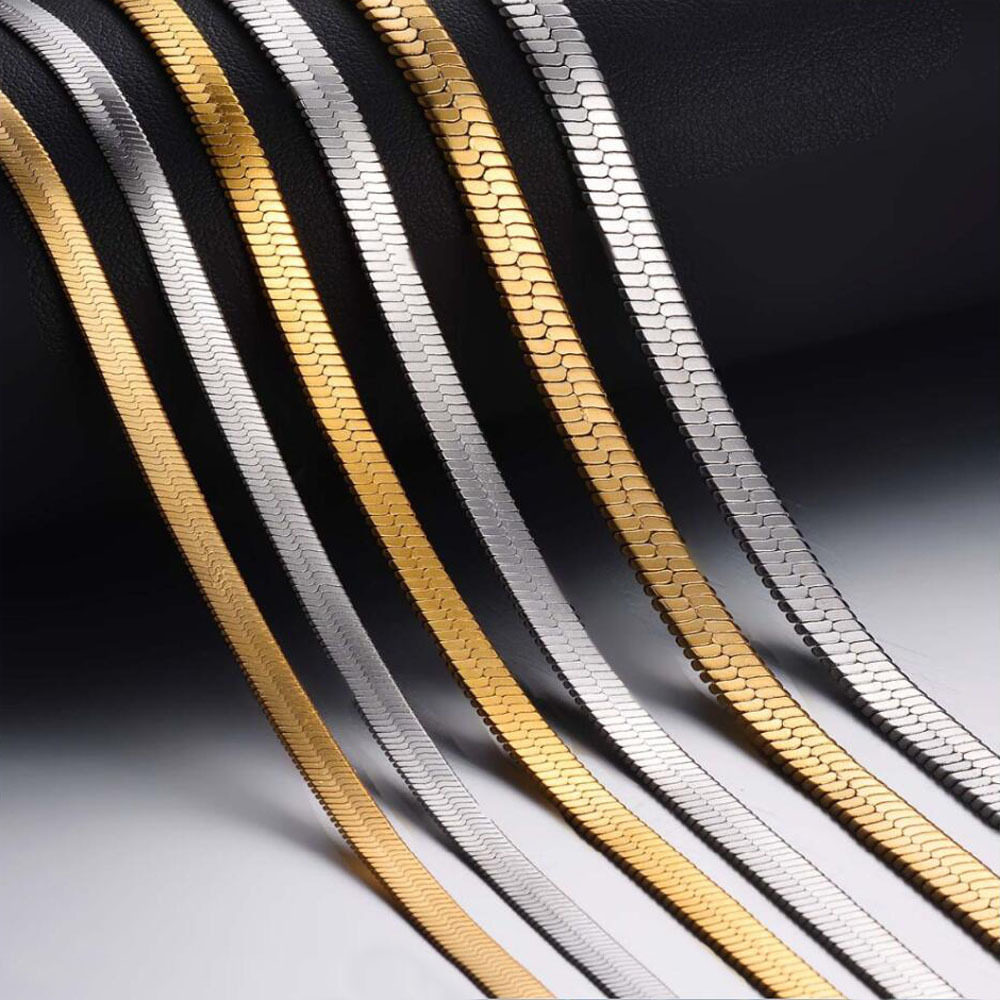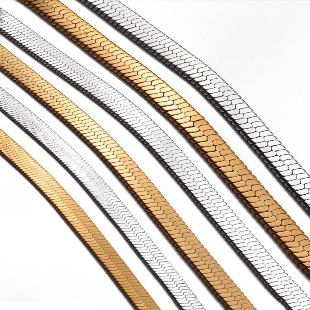 不锈钢链条钢色流行首饰扁平蛇骨项链饰品金色配链男女配饰DPO001