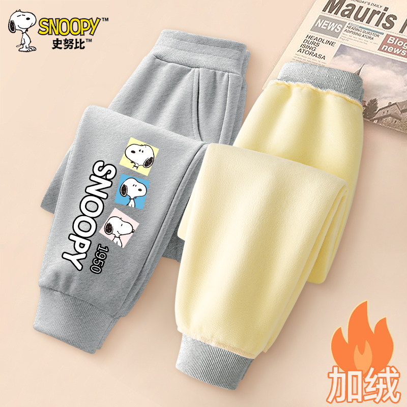 史努比男童加绒裤子秋冬季保暖长裤2025新款儿童洋气休闲卫裤冬装
