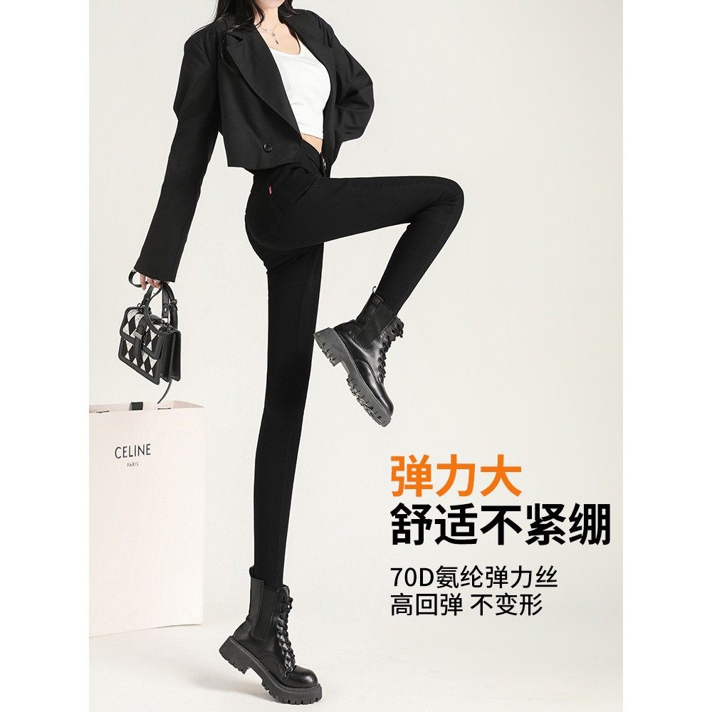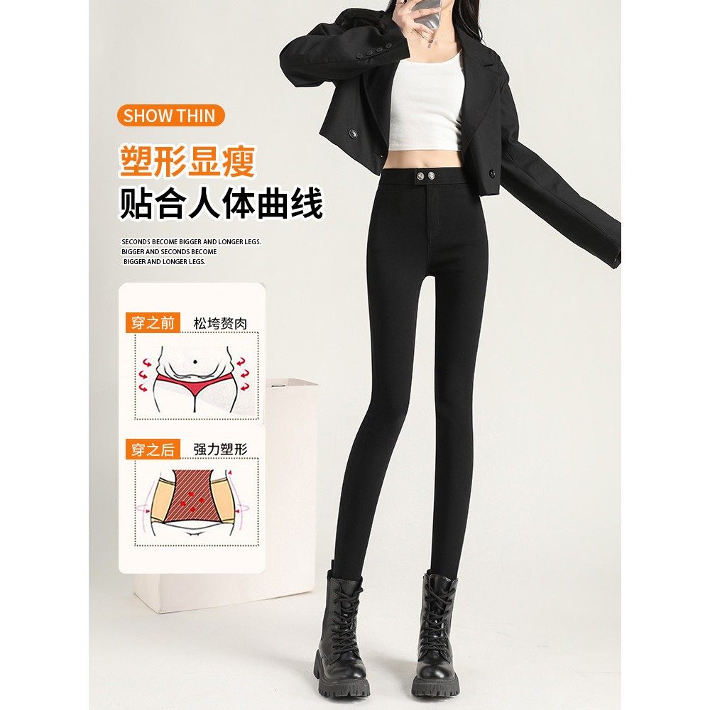 打底裤女外穿2025新款秋冬加绒黑色高腰紧身弹力铅笔小黑小脚裤子