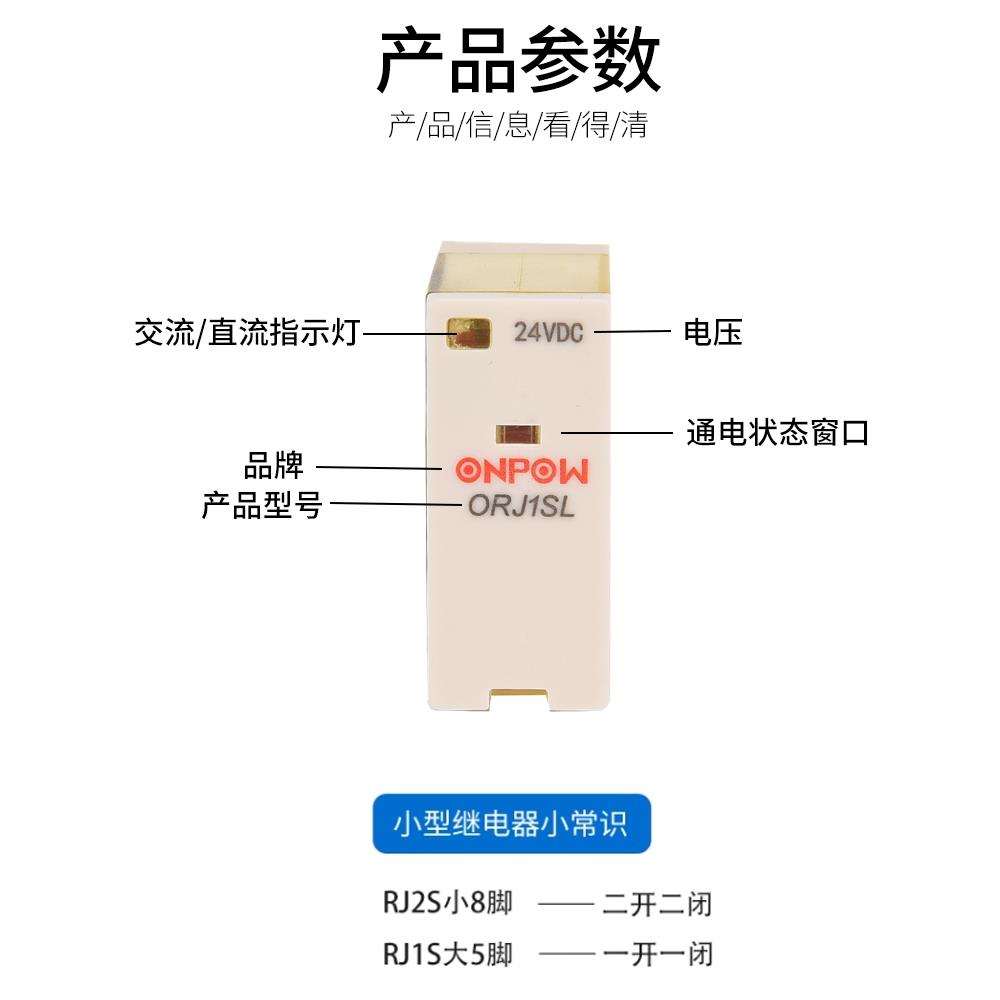 小型薄款中间继电器RJ1S一开一闭5脚RJ2S二开二闭8脚DC24V AC220V
