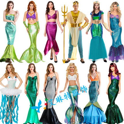 万圣节集体派对舞会演出服装 美人鱼鱼尾裙 抹胸长款鱼摆裙cos服