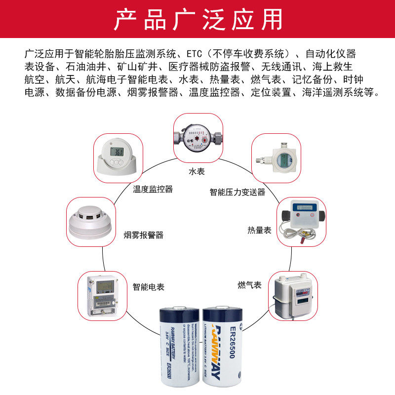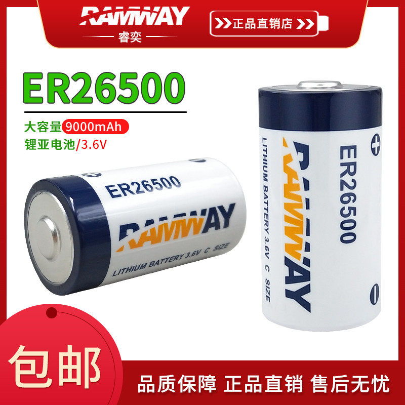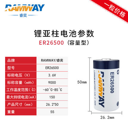 睿奕锂电池ER26500 3.6V 热量表 定位器PLC流量计3.6V一次性C型锂