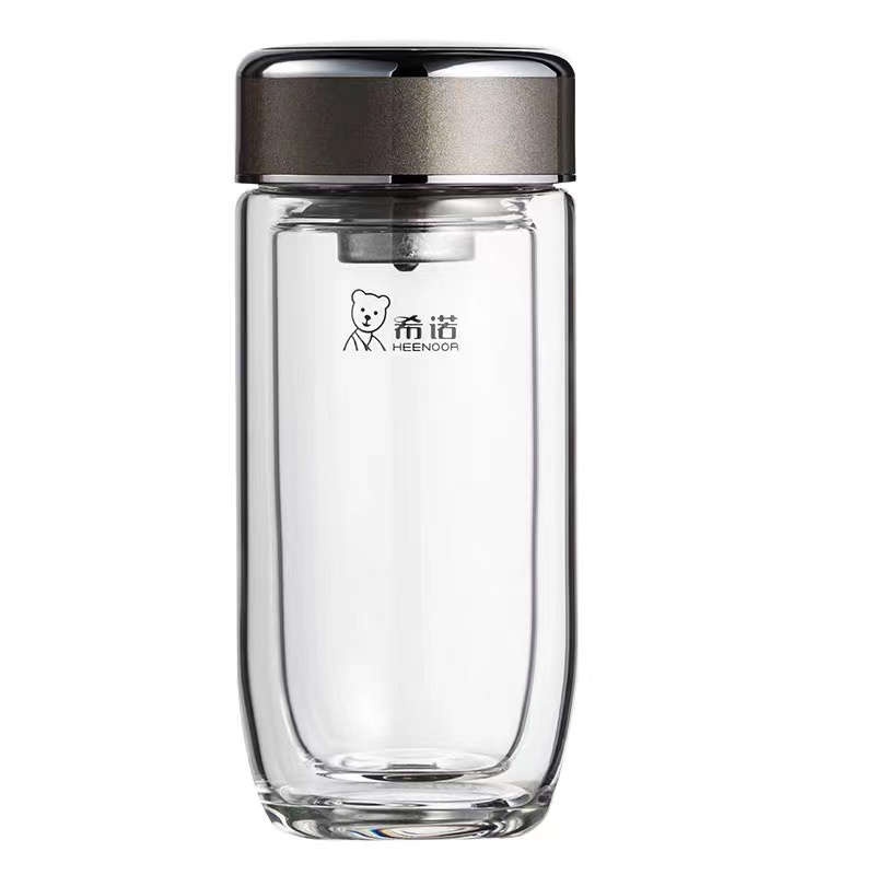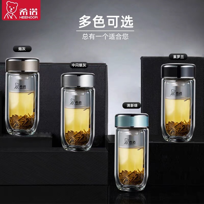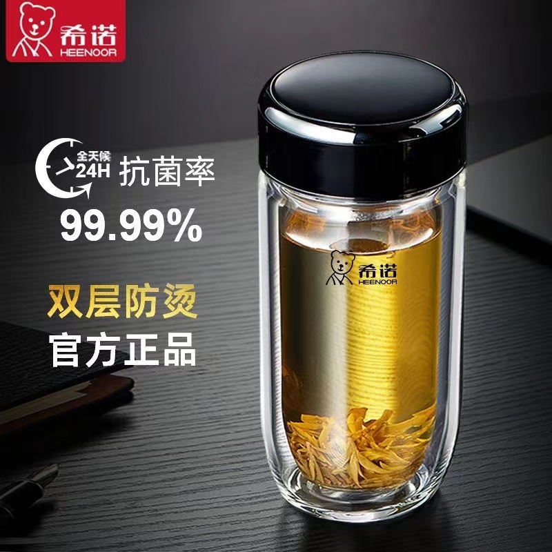 希诺新款男女银离子抗菌杯双层玻璃杯泡茶杯办公杯鹅蛋车载杯子